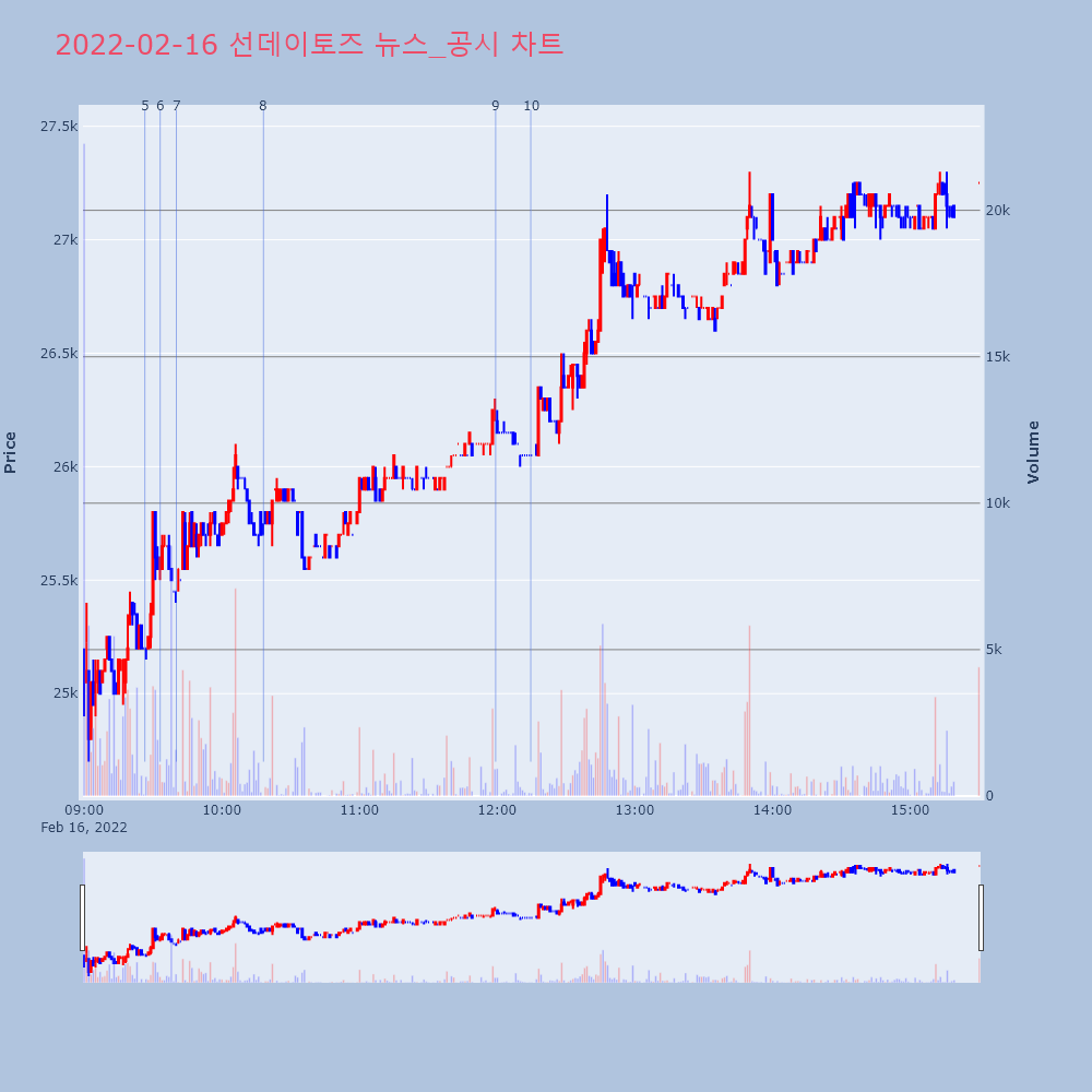 | 2022-02-16 10:05:00 | 20220216900103 | 매출액또는손익구조30%(대규모법인은15%)이상변동 |