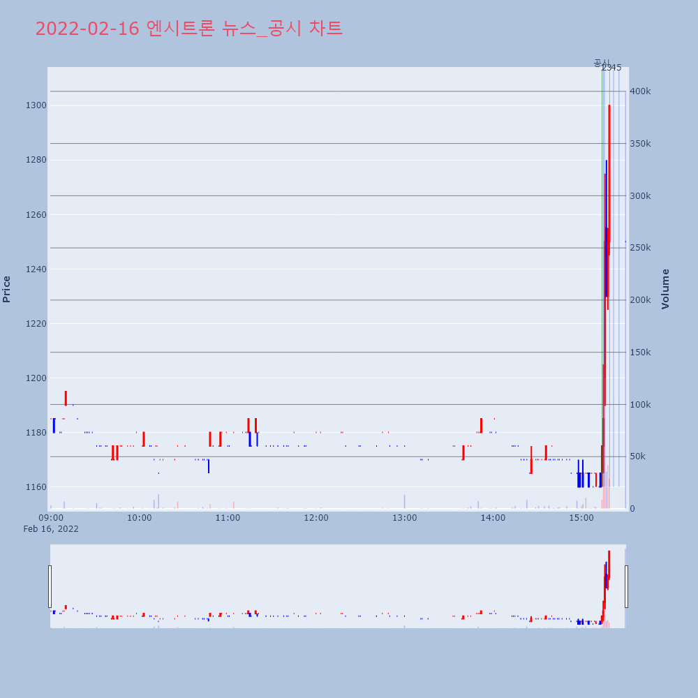 | 4 | 엔비티, +13.65% VI 발동엔비티(236810)가 VI가 발동했다. 전일 대비 1 | 조선경제 | 엔비티 | 2022-02-16 12:45:51 |