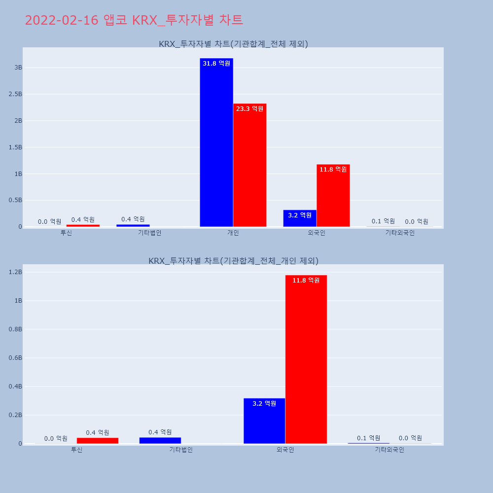 | 투자기관 | 거래량_매도 | 거래량_매수 | 거래량_순매수 | 거래대금_매도 | 거래대금_매수 | 거래대금_순매수 |
