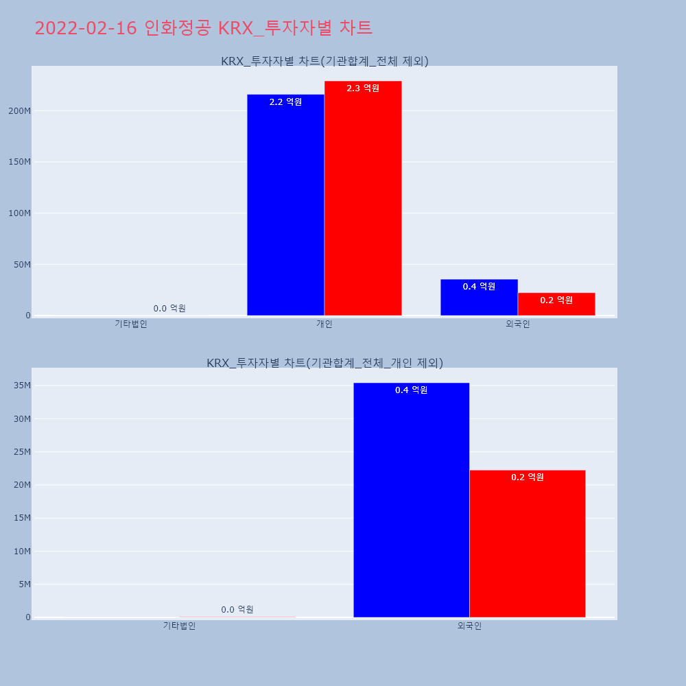 | 외국인 | 85,927 | 71,383 | -14,544 | 1,597,944,850 | 1,291,704,950 | -306,239,900 |