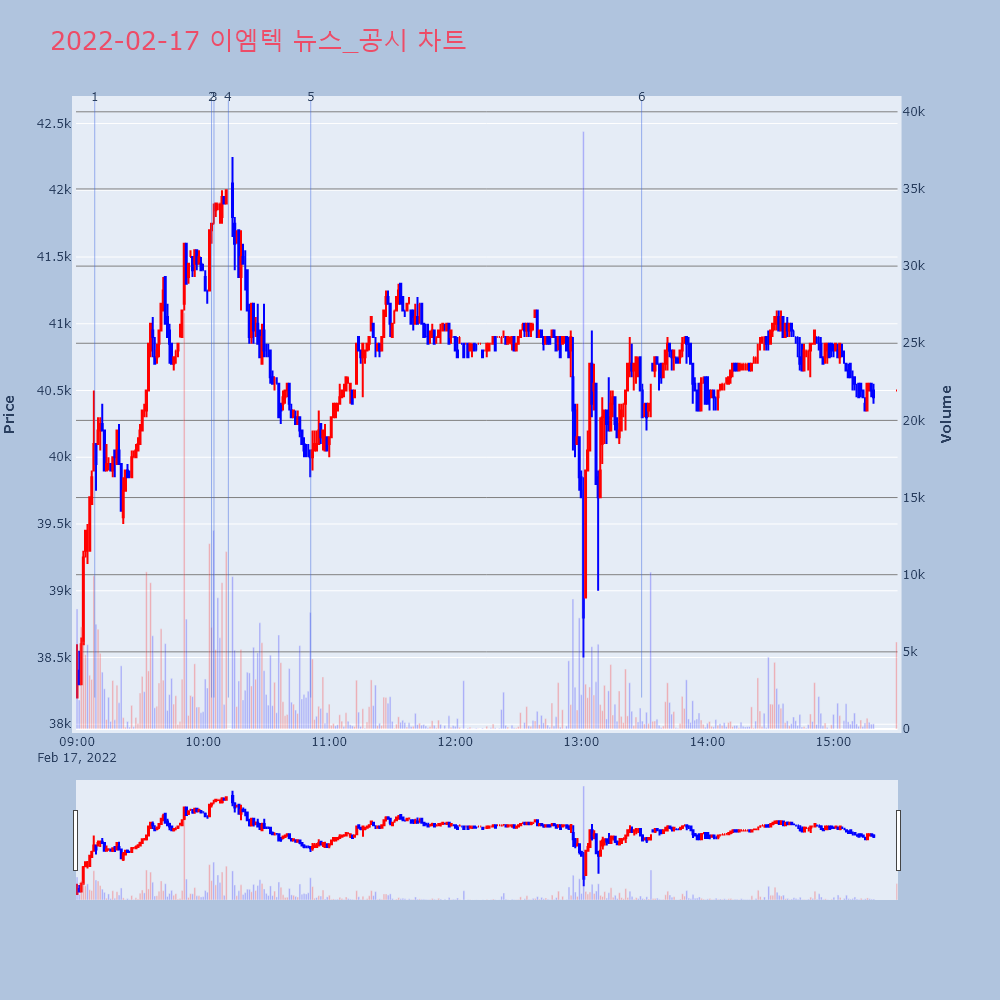 | 4 | 이엠텍, +10.24% VI 발동이엠텍(091120)이 VI가 발동했다. 전일 대비 1 | 조선경제 | 이엠텍 | 2022-02-17 10:12:01 |