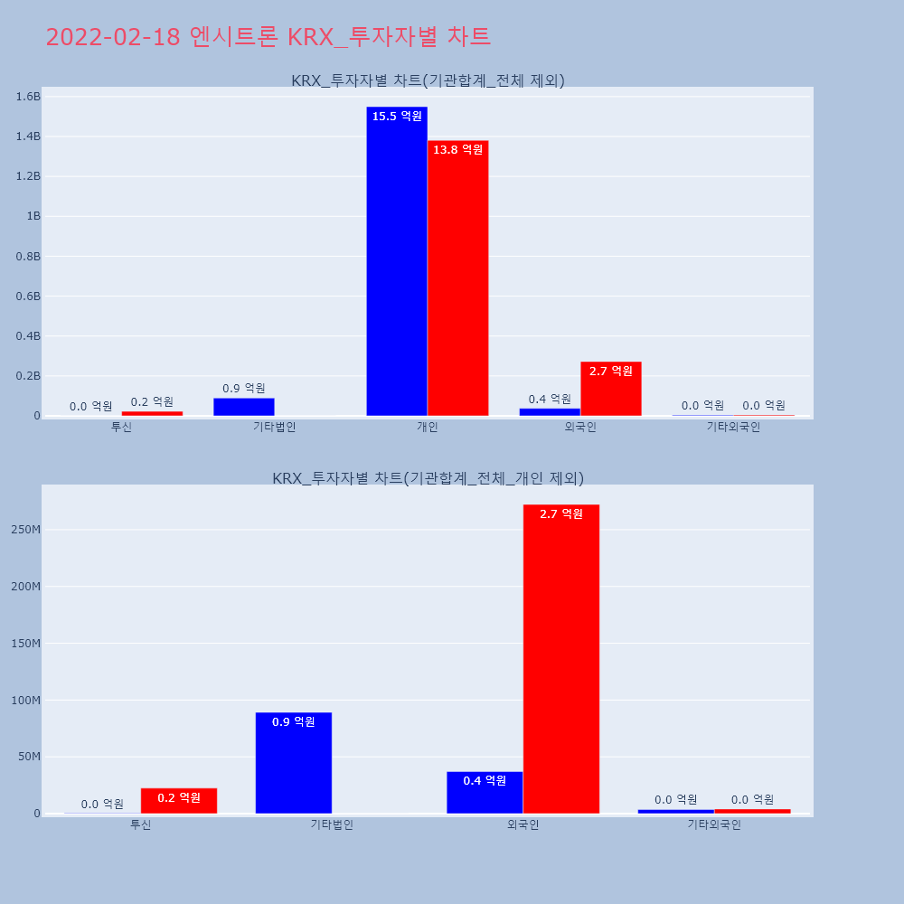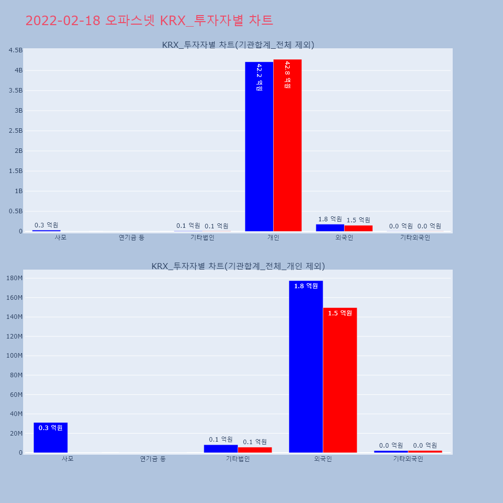 | 투자기관 | 거래량_매도 | 거래량_매수 | 거래량_순매수 | 거래대금_매도 | 거래대금_매수 | 거래대금_순매수 |