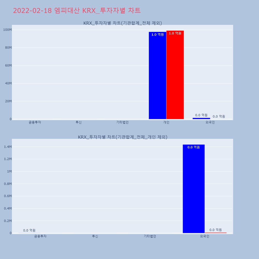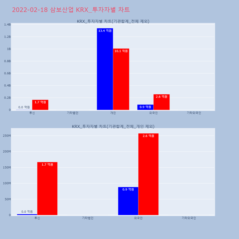| 투자기관 | 거래량_매도 | 거래량_매수 | 거래량_순매수 | 거래대금_매도 | 거래대금_매수 | 거래대금_순매수 |