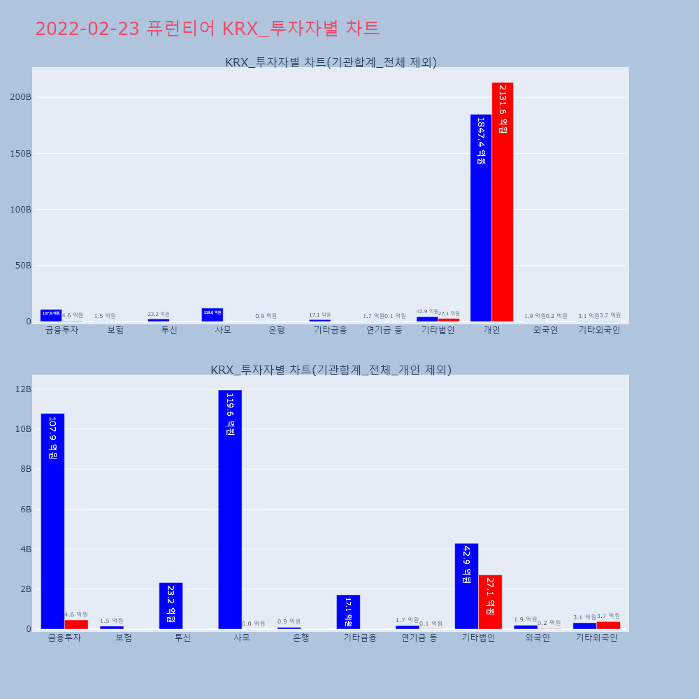 | 투자기관 | 거래량_매도 | 거래량_매수 | 거래량_순매수 | 거래대금_매도 | 거래대금_매수 | 거래대금_순매수 |