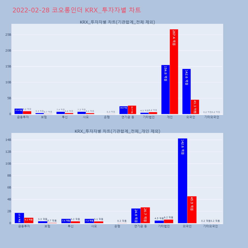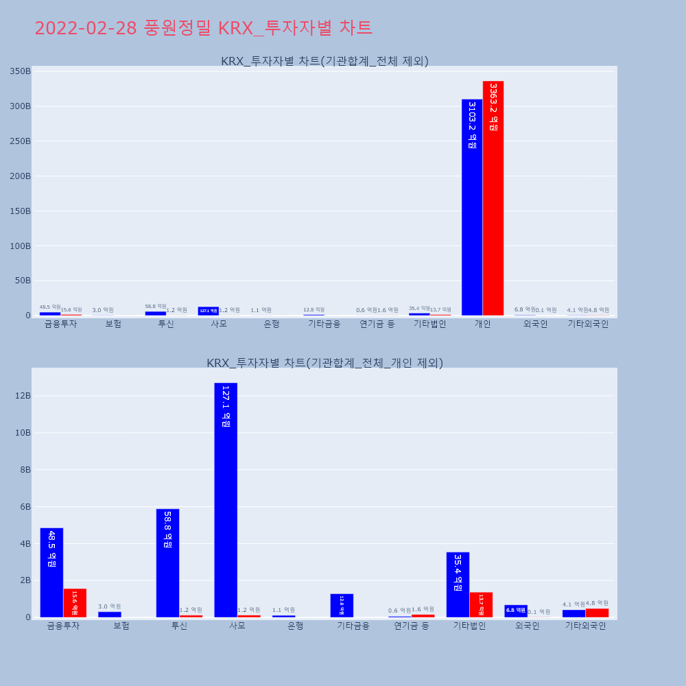 | 투자기관 | 거래량_매도 | 거래량_매수 | 거래량_순매수 | 거래대금_매도 | 거래대금_매수 | 거래대금_순매수 |