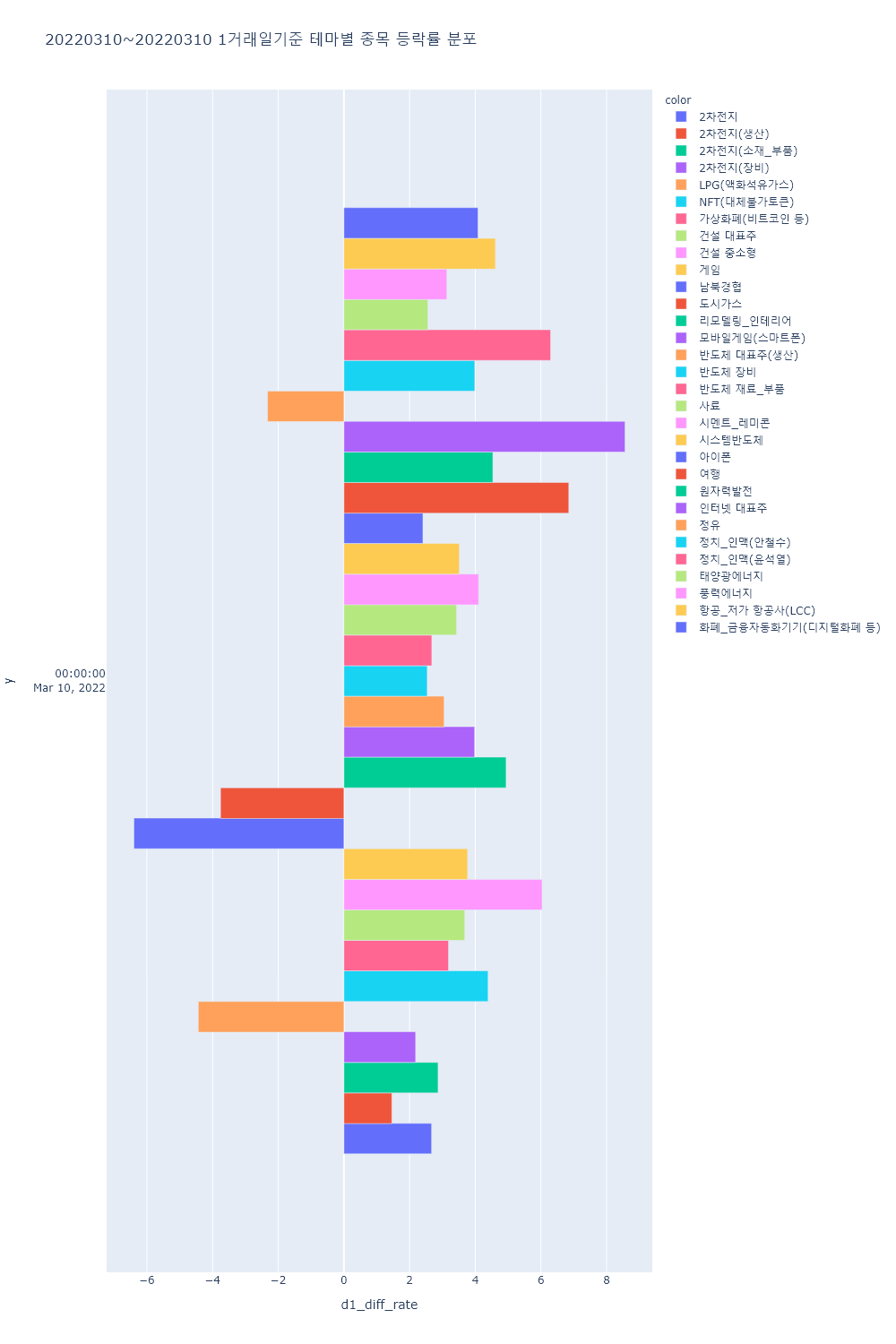 ▷이 외에 야놀자 관련주, 크래프톤 관련주, 보톡스, 면역항암제, 웹툰, 카지노, 음원/음반, 손해보험, UAM(도심항공모빌리티) 등 대부분의 테마가 상승.