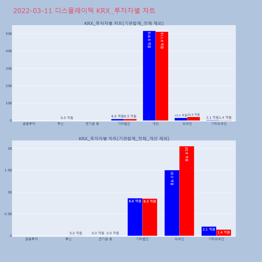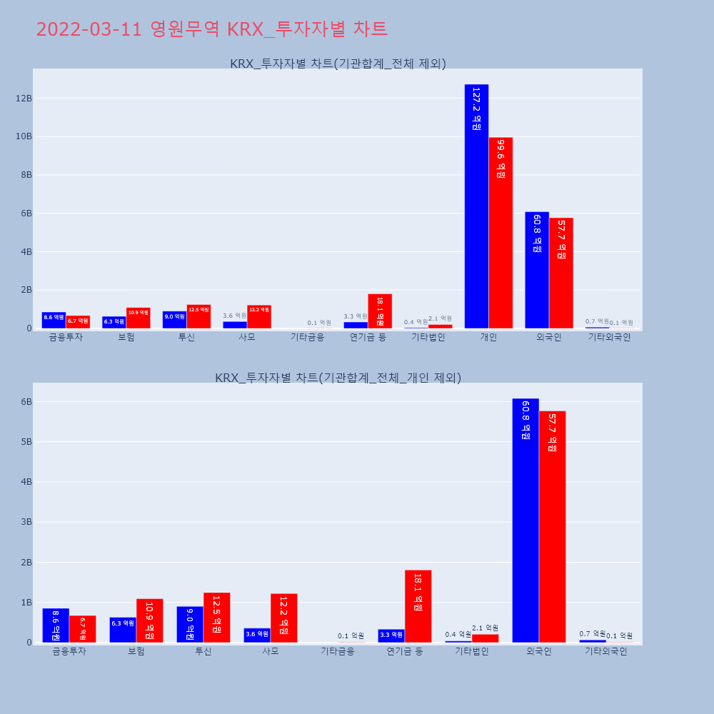 | 투자기관 | 거래량_매도 | 거래량_매수 | 거래량_순매수 | 거래대금_매도 | 거래대금_매수 | 거래대금_순매수 |