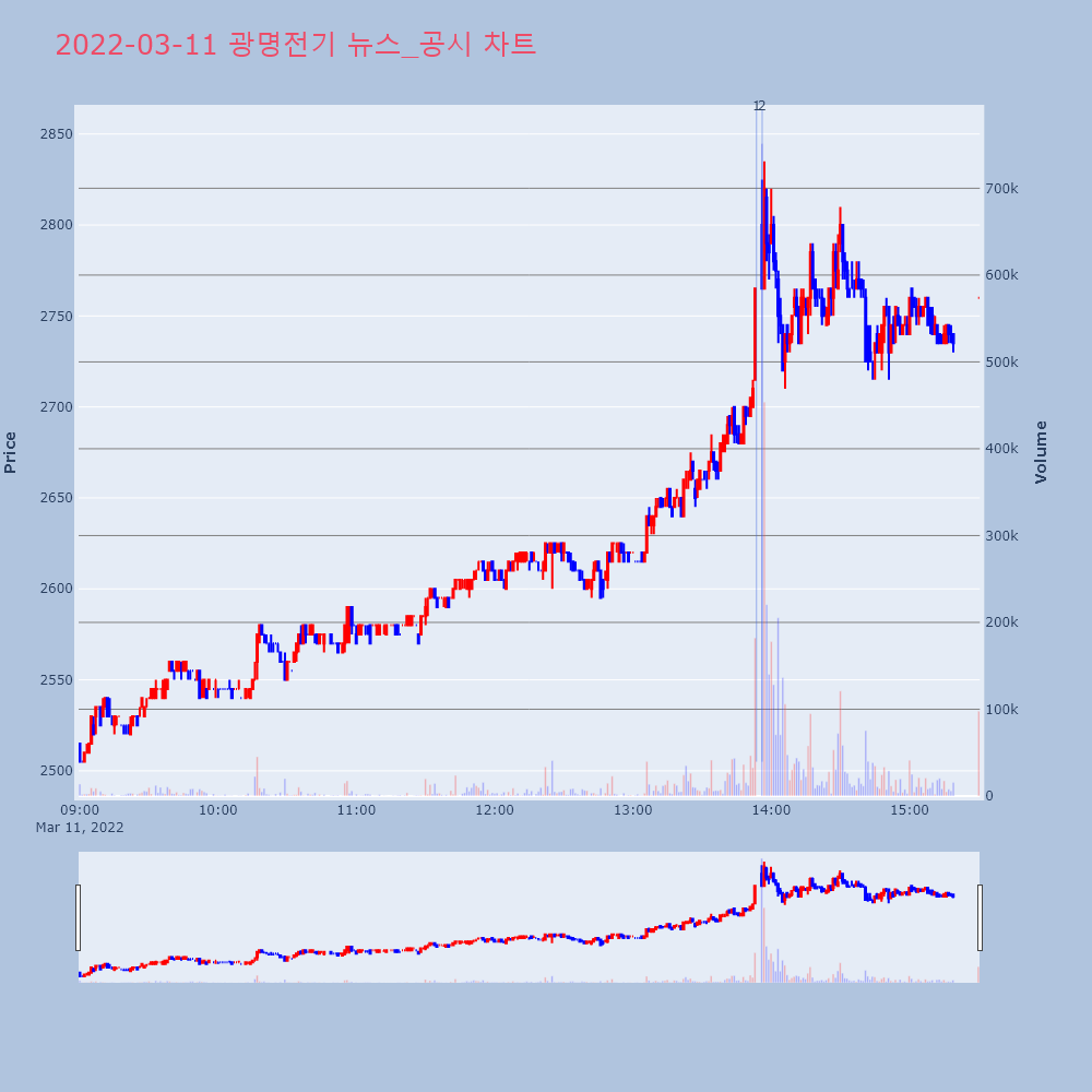 | 2 | 광명전기, +12.42% 상승폭 확대광명전기(017040)가 상승폭을 확대하고 있다. 전일 | 조선경제 | 광명전기 | 2022-03-11 13:56:04 |