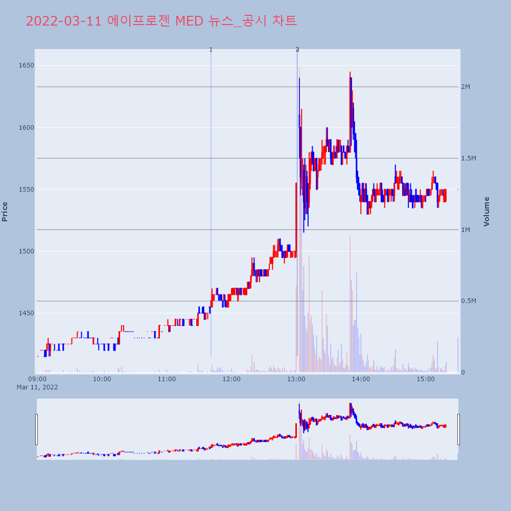 | 2 | 에이프로젠 MED, +9.89% VI 발동에이프로젠 MED(007460)가 VI가 발동했다. 전 | 조선경제 | 에이프로젠 MED | 2022-03-11 13:00:56 |