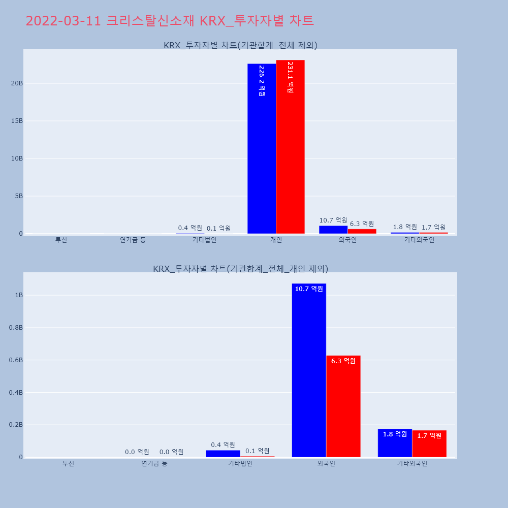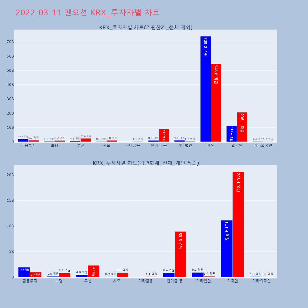 | 투자기관 | 거래량_매도 | 거래량_매수 | 거래량_순매수 | 거래대금_매도 | 거래대금_매수 | 거래대금_순매수 |
