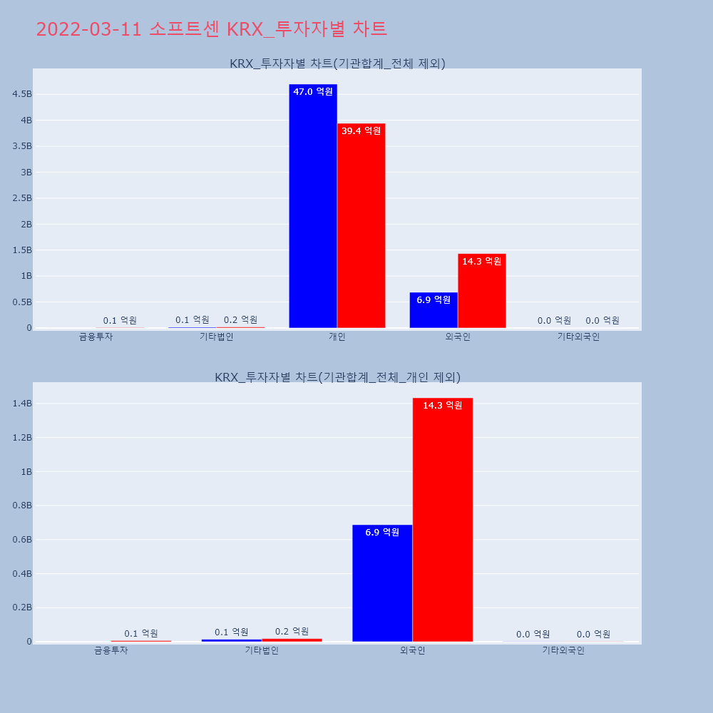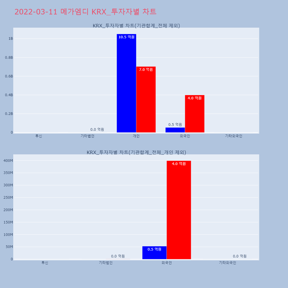 | 투자기관 | 거래량_매도 | 거래량_매수 | 거래량_순매수 | 거래대금_매도 | 거래대금_매수 | 거래대금_순매수 |