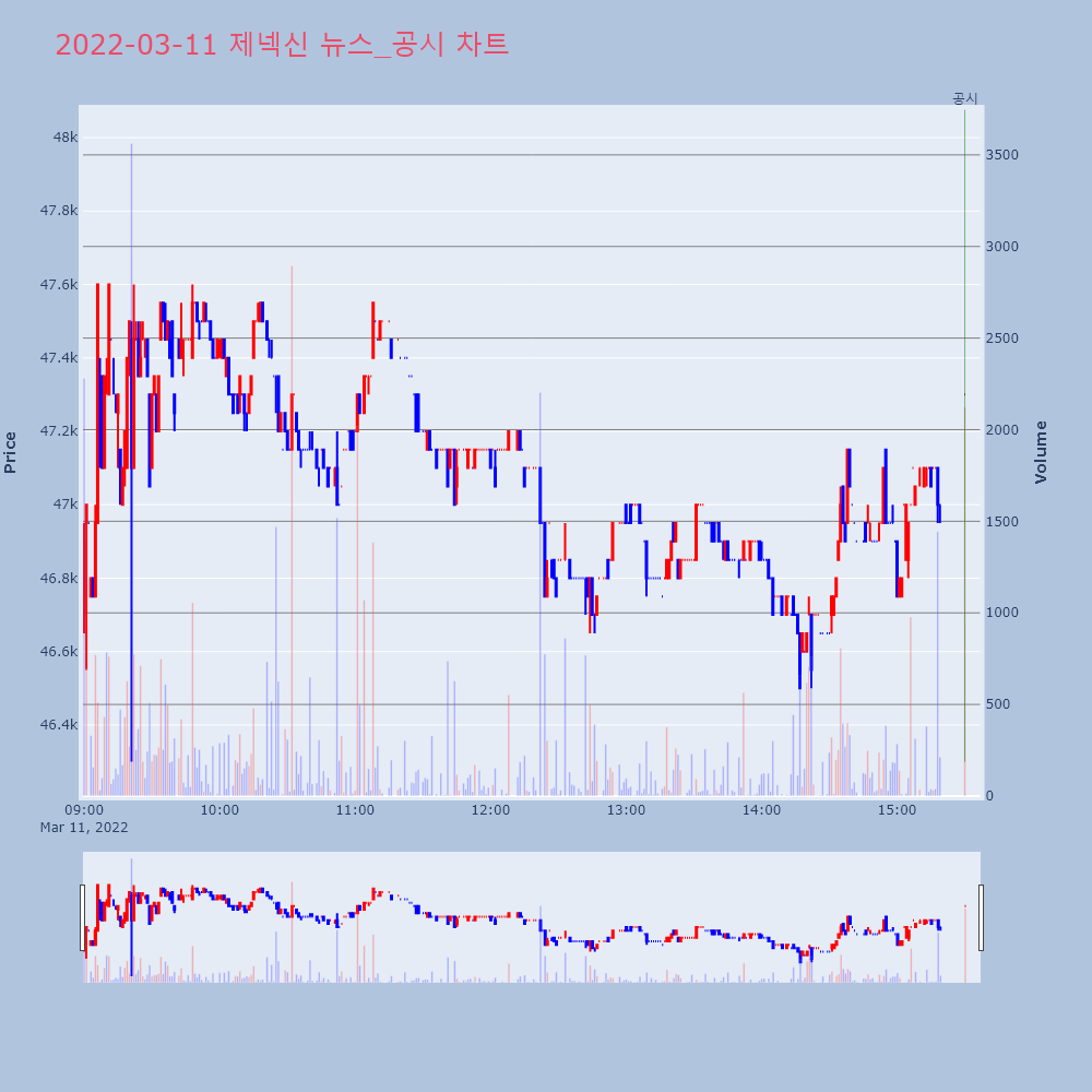 | 2022-03-11 15:30:00 | 20220311900819 | 투자판단관련주요경영사항 (COVID-19 예방 DNA 백신 GX-19N의 2/3상 임상시험 자진 철회 결정) |