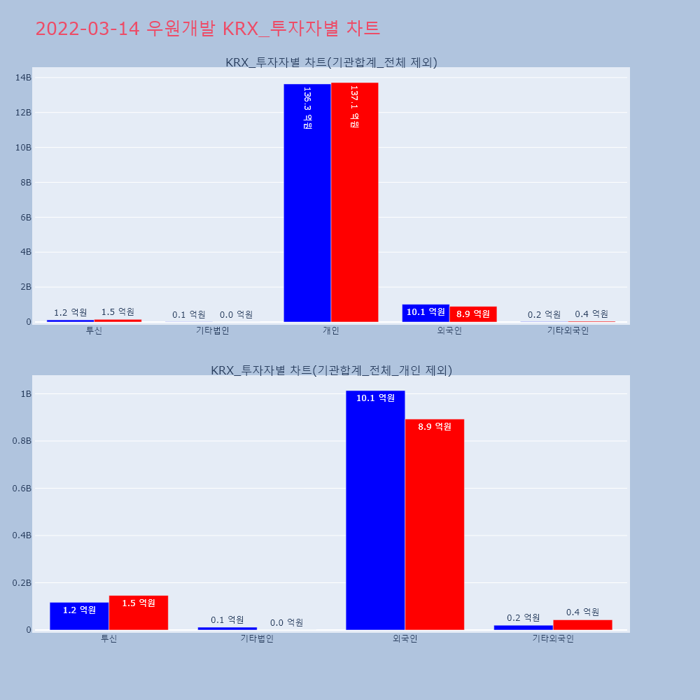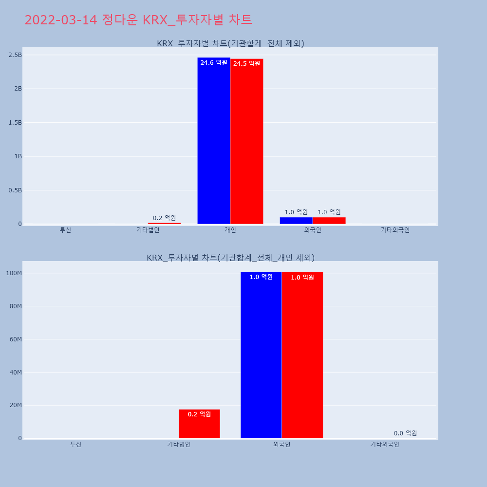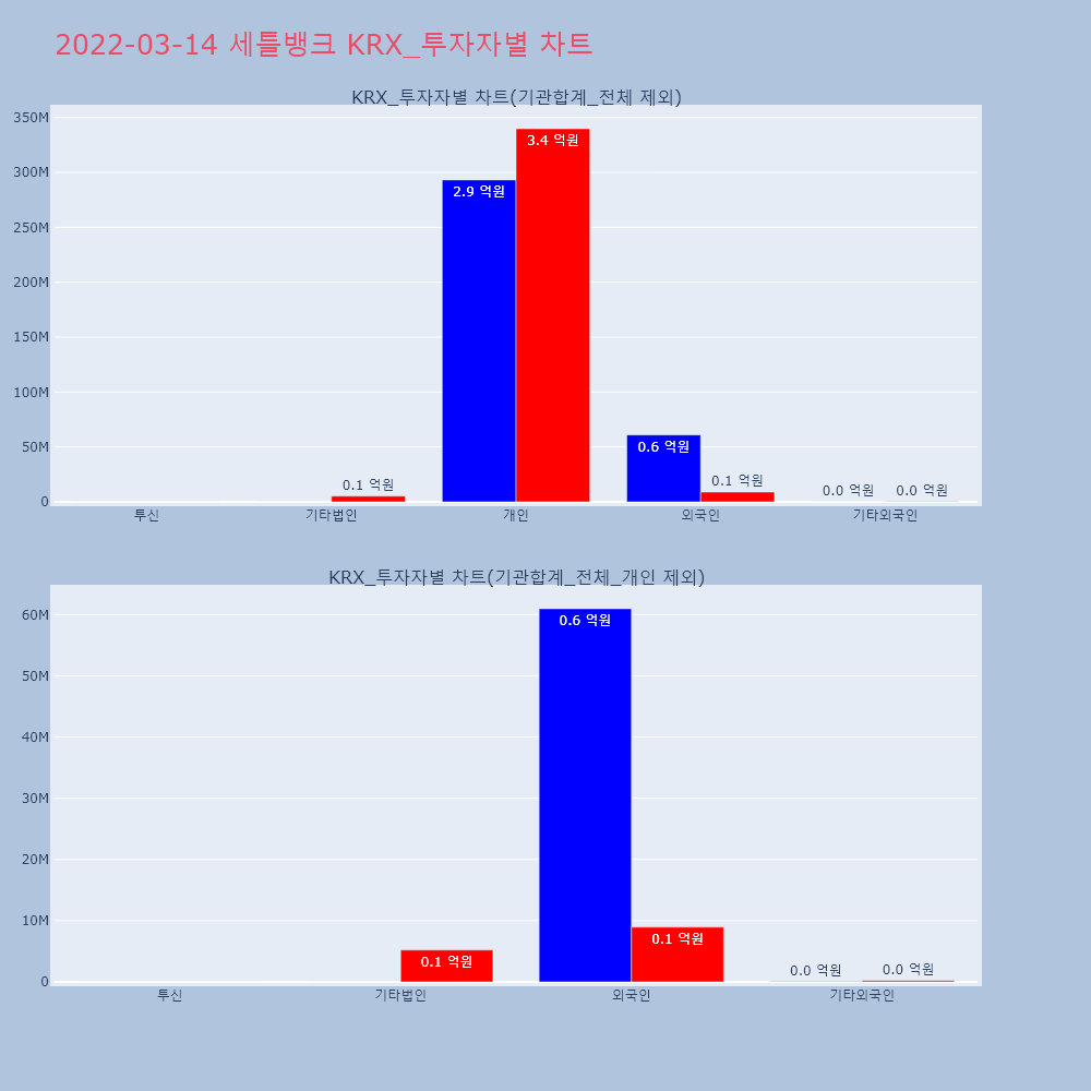 | 투자기관 | 거래량_매도 | 거래량_매수 | 거래량_순매수 | 거래대금_매도 | 거래대금_매수 | 거래대금_순매수 |