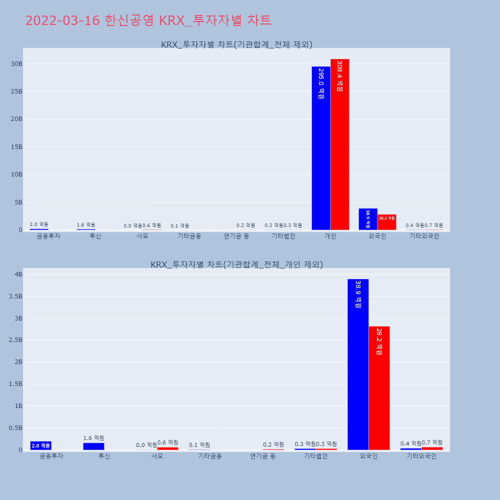 | 투자기관 | 거래량_매도 | 거래량_매수 | 거래량_순매수 | 거래대금_매도 | 거래대금_매수 | 거래대금_순매수 |