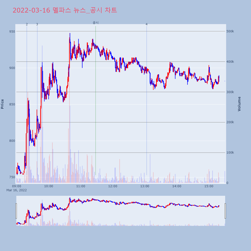 | 2 | 멜파스, +9.93% VI 발동멜파스(096640)가 VI가 발동했다. 전일 대비 9 | 조선경제 | 멜파스 | 2022-03-16 09:19:09 |