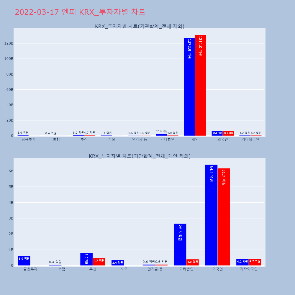 | 투자기관 | 거래량_매도 | 거래량_매수 | 거래량_순매수 | 거래대금_매도 | 거래대금_매수 | 거래대금_순매수 |