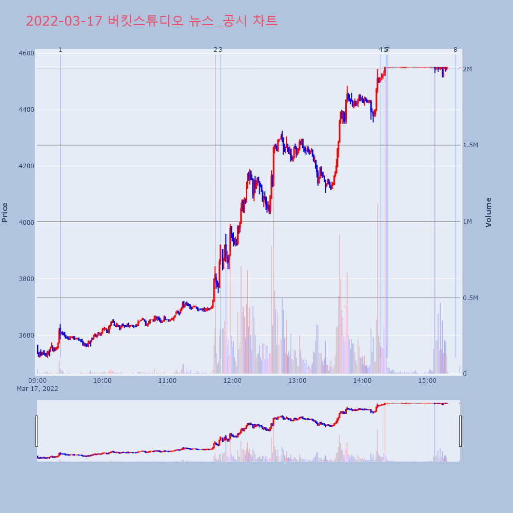 | 6 | 버킷스튜디오(066410) 상한가 진입 제목 : 버킷스튜디오(066410)상한가 진입기업개요I | 인포스탁 | 버킷스튜디오 | 2022-03-17 14:22:00 |