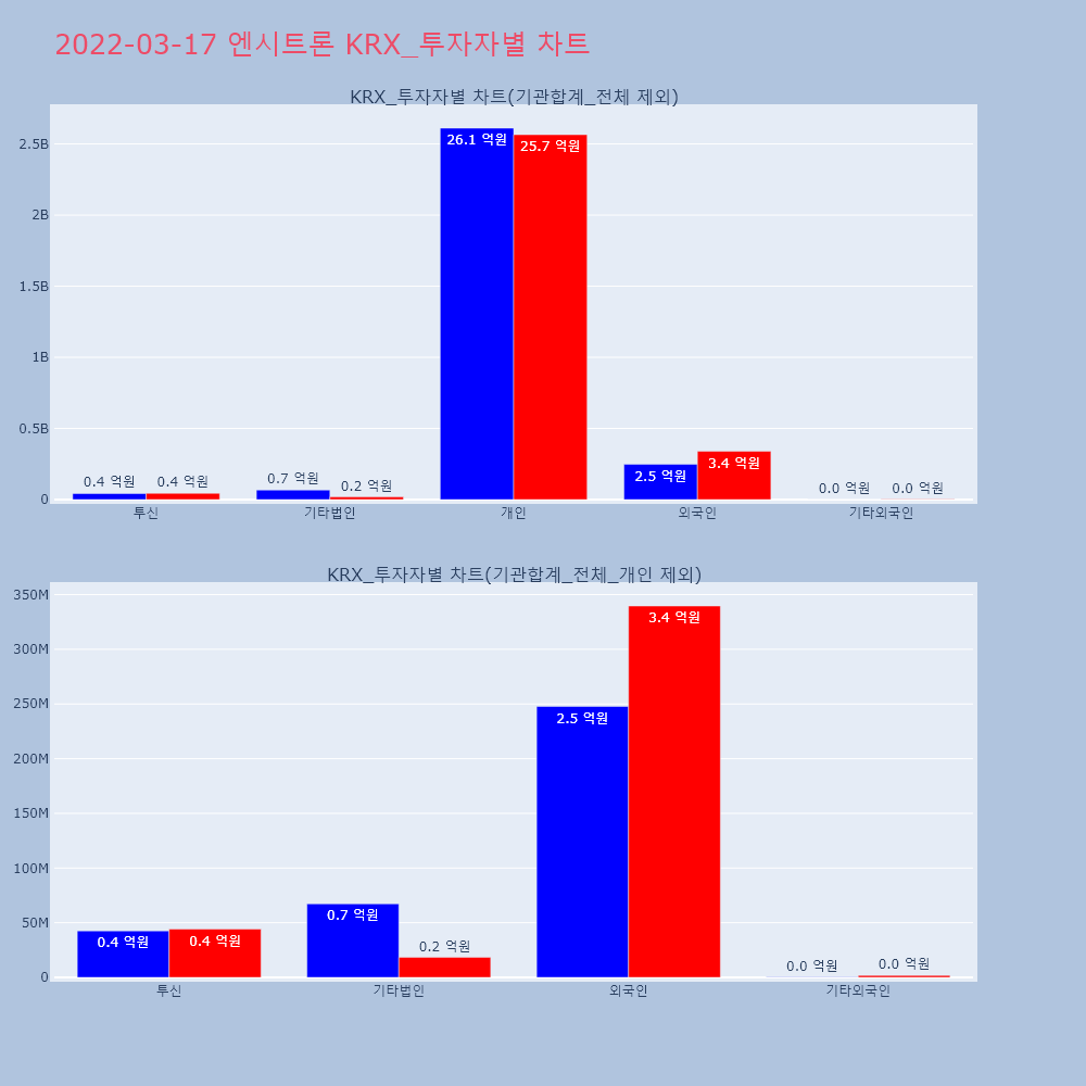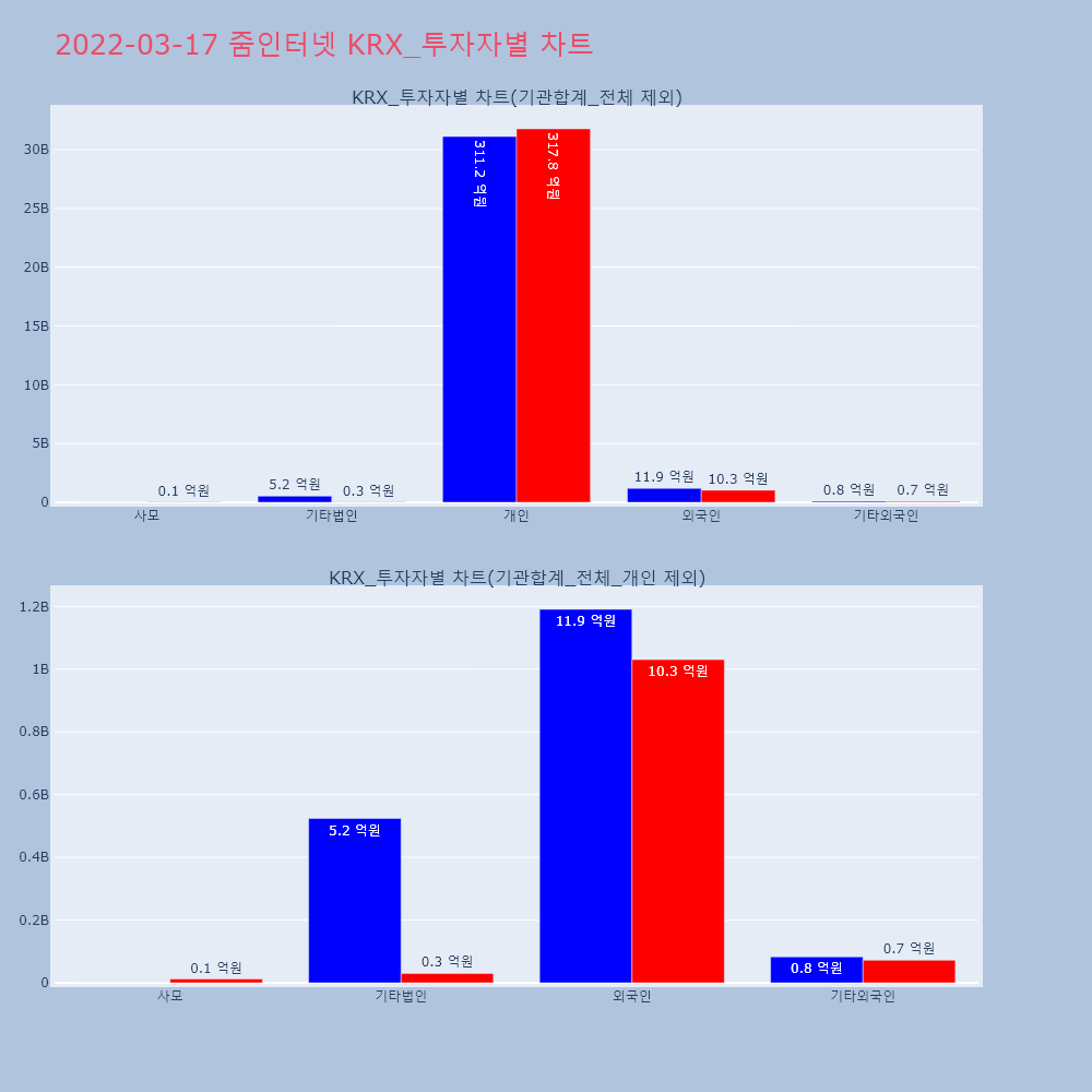 | 투자기관 | 거래량_매도 | 거래량_매수 | 거래량_순매수 | 거래대금_매도 | 거래대금_매수 | 거래대금_순매수 |