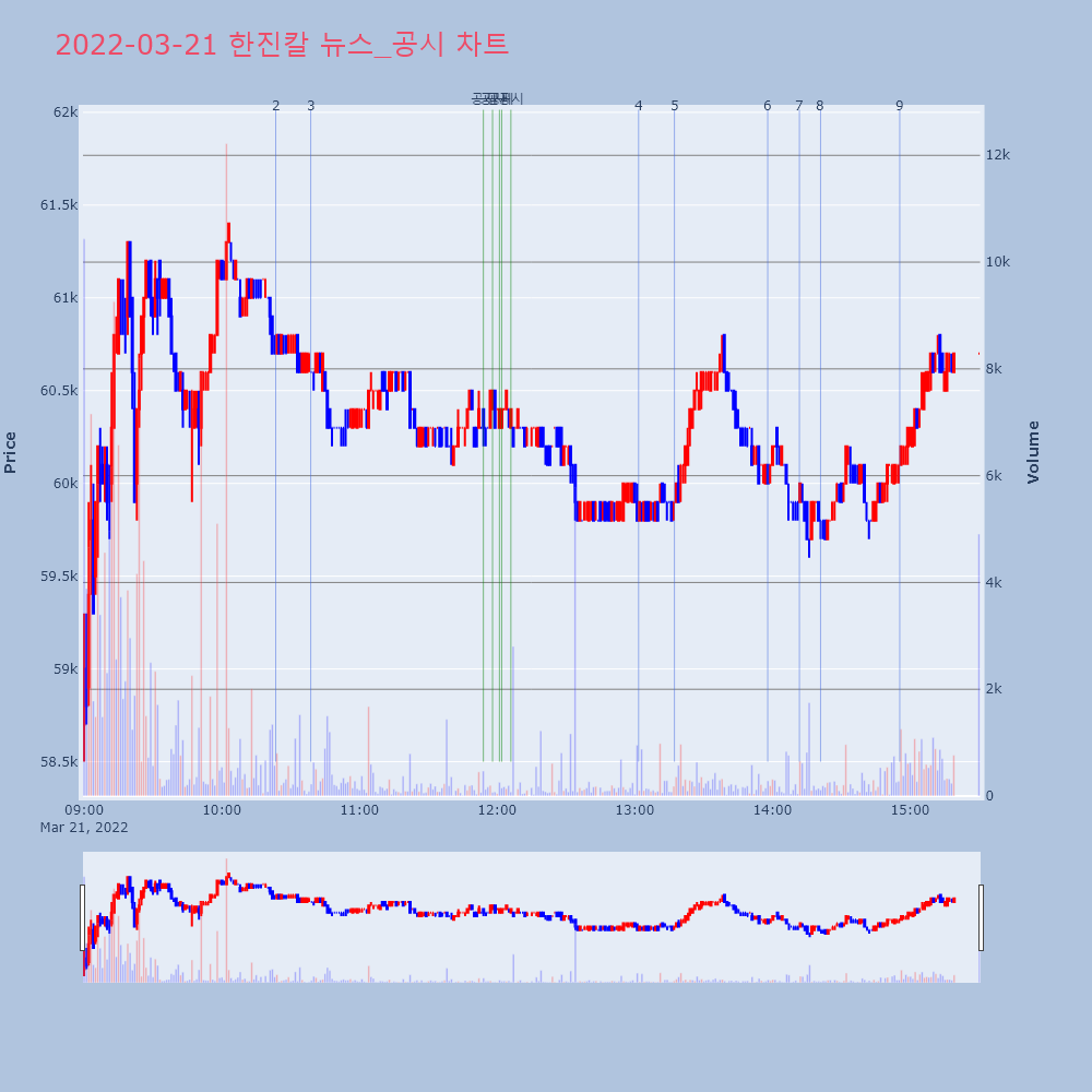 | 2 | [장중수급포착] 한진칼, 외국인/기관 동시 순매수… 주가 +5.90% [서울=뉴스핌] 로보뉴스 = 21일 10시 15분 현재 | 뉴스핌 | 한진칼 | 2022-03-21 10:23:31 |