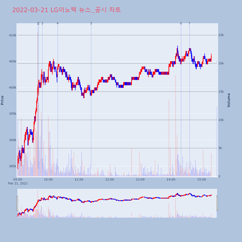 | 6 | [특징주]LG이노텍, 52주 신고가…장중 40만8000원▶ 하이스탁론, 선취수수료 없는 월 0.2%대 최저금리 | 이데일리 | LG이노텍 | 2022-03-21 14:19:50 |