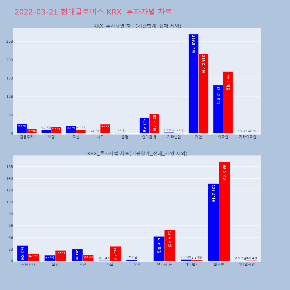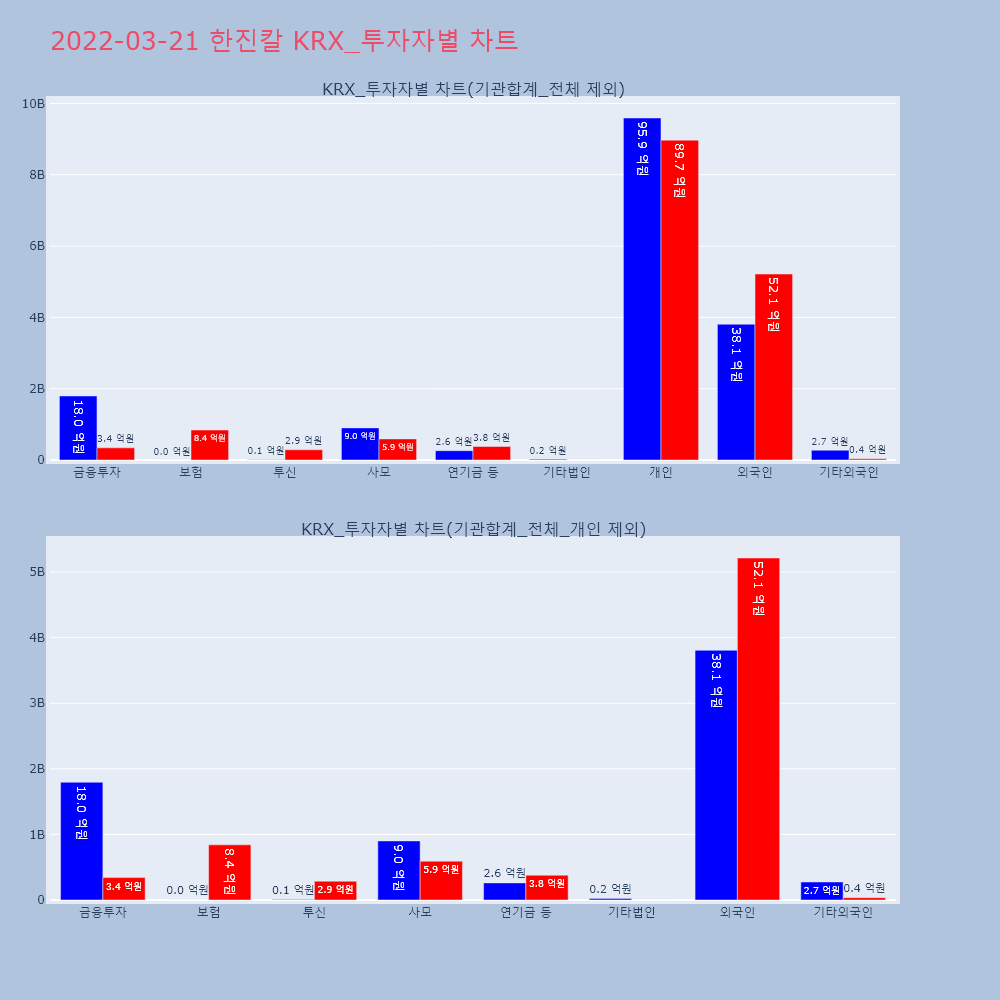 | 투자기관 | 거래량_매도 | 거래량_매수 | 거래량_순매수 | 거래대금_매도 | 거래대금_매수 | 거래대금_순매수 |