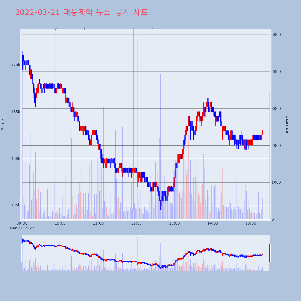 | 2 | [특징주]대웅제약, 코로나치료제 임상 중단에 하락▶ 하이스탁론, 선취수수료 없는 월 0.2%대 최저금리 | 이데일리 | 대웅제약 | 2022-03-21 09:53:14 |