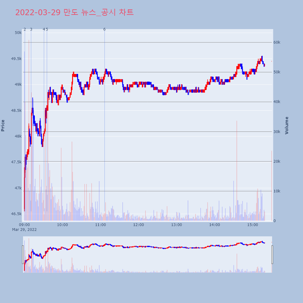 | 5 | [특징주] 만도, 현대·테슬라 등 전기차 생산량 회복 기대감에 5%↑ 제목 : [특징주] 만도, 현대·테슬라 등 전기차 생산 | 인포스탁 | 만도 | 2022-03-29 09:35:31 |
