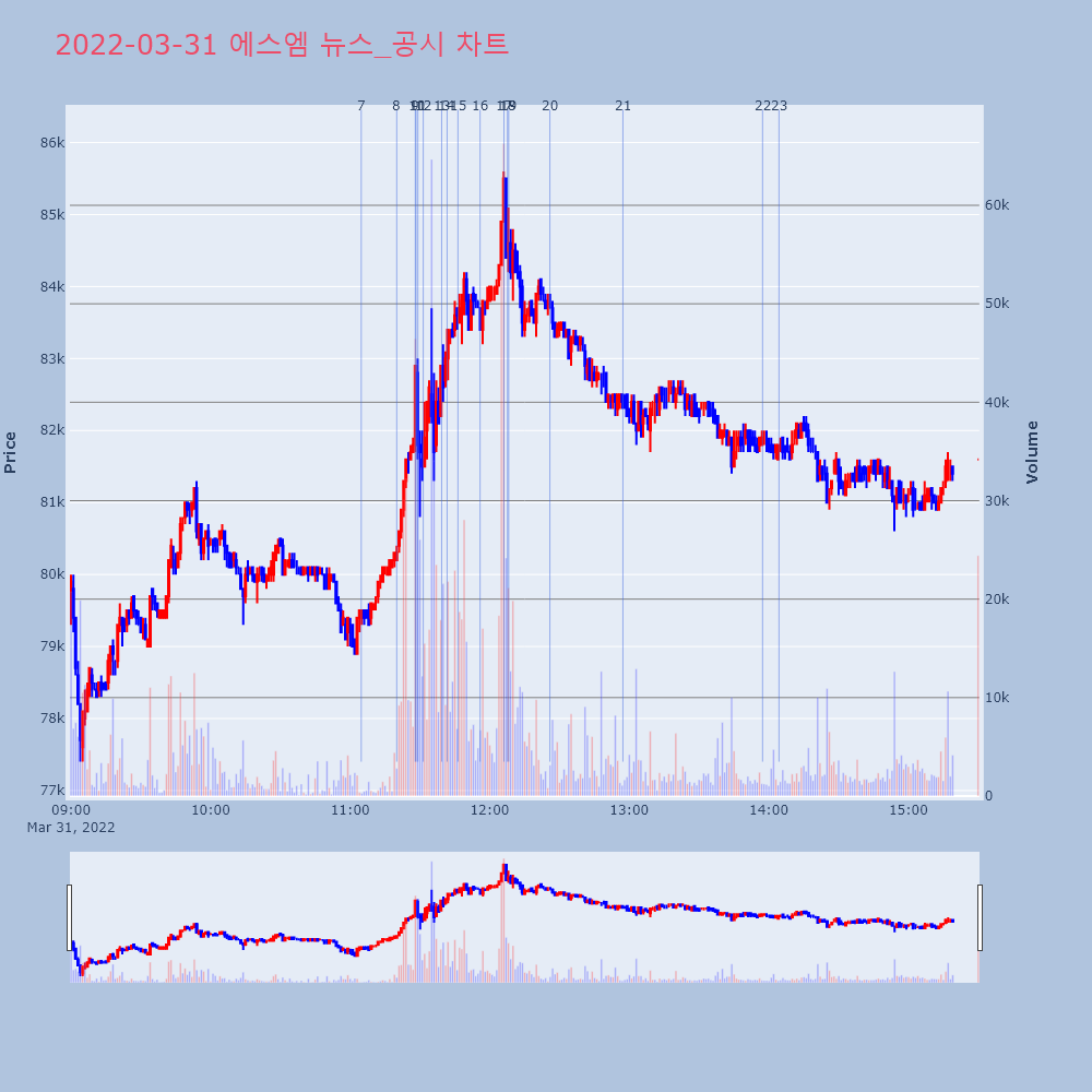 | 22 | [특징주]에스엠 주총 지연에 ↓ 행동주의 펀드 승리에 ↑ "널뛰기"[아시아경제 이선애 기자] 31일 에스엠 주가가 널뛰었 | 아시아경제 | 에스엠 | 2022-03-31 13:57:18 |