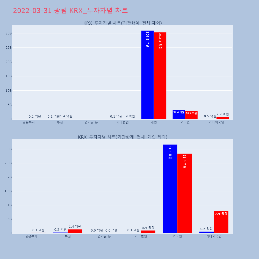 | 투자기관 | 거래량_매도 | 거래량_매수 | 거래량_순매수 | 거래대금_매도 | 거래대금_매수 | 거래대금_순매수 |