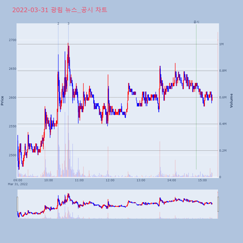 | 2 | [시간외Y] 광림, 쌍방울, WI 등 '상한가'[프라임경제] 재테크와 투자, 부동산 등에 대한 관심이 | 프라임경제 | 광림 | 2022-03-31 18:17:57 |