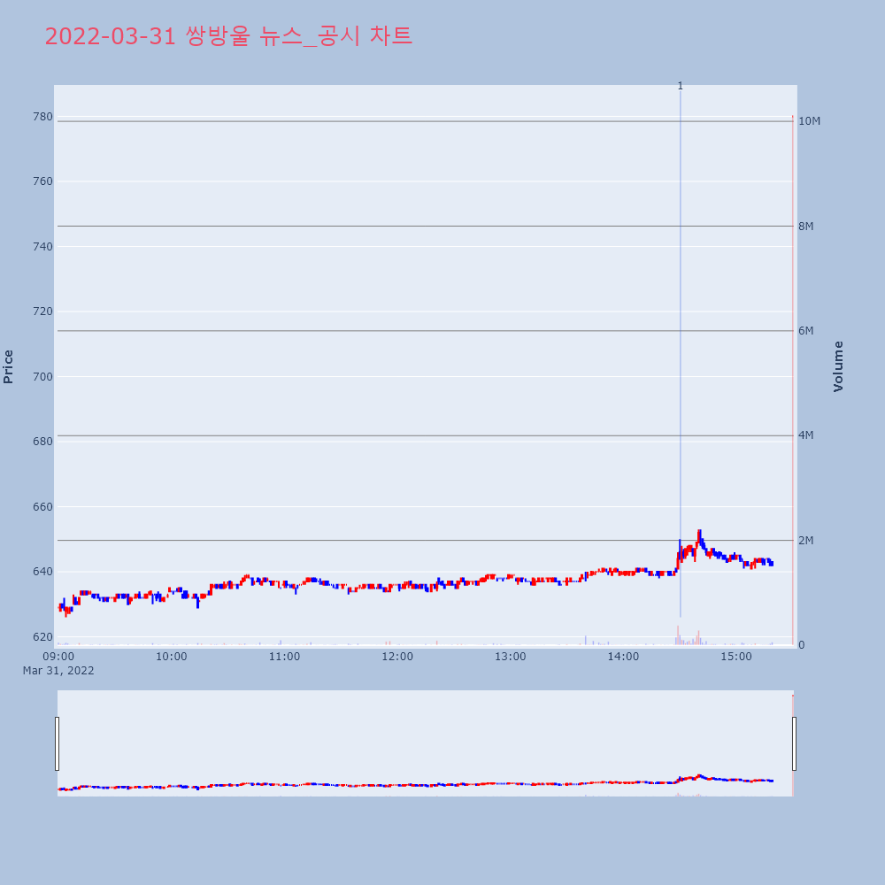 | 1 | 쌍방울(102280) 소폭 상승세 +3.02% 제목 : 쌍방울(102280)소폭 상승세 +3.02%기 | 인포스탁 | 쌍방울 | 2022-03-31 14:30:21 |