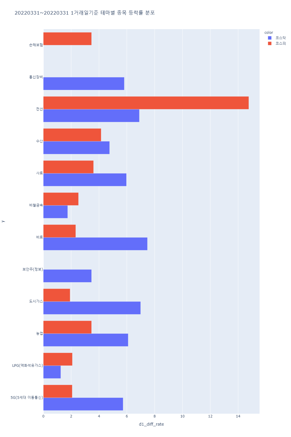 ▷이 외에 타이어, 육계, 석유화학, 주류업(주정, 에탄올 등), 철도, 엔터테인먼트, 골프, 정유, 희귀금속(희토류 등) 테마가 상승률 상위를 기록.