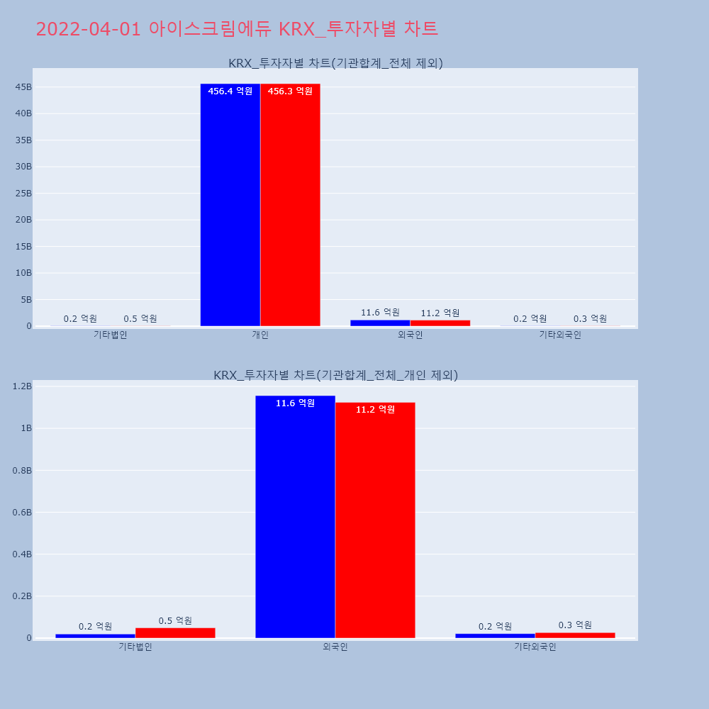 | 투자기관 | 거래량_매도 | 거래량_매수 | 거래량_순매수 | 거래대금_매도 | 거래대금_매수 | 거래대금_순매수 |