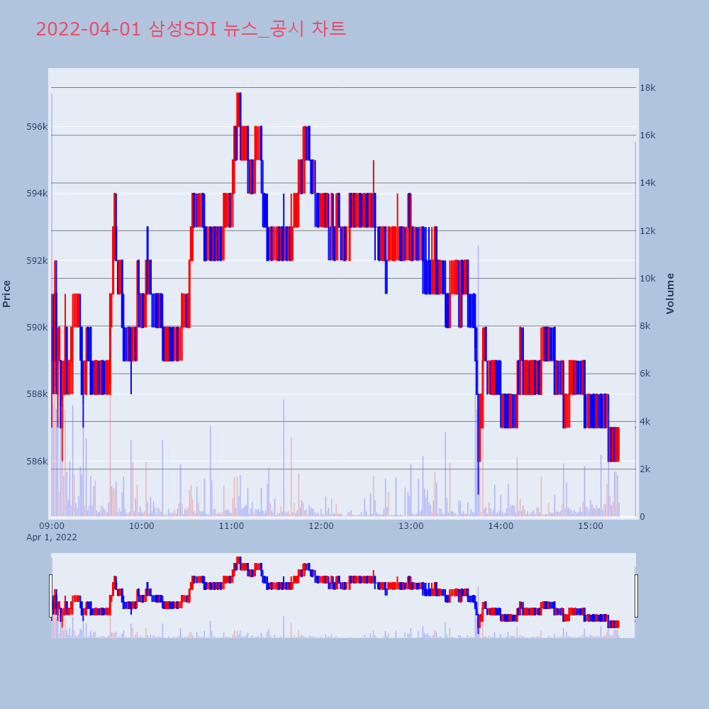 | 4 | 삼성SDI(006400) 소폭 상승세 +3.21% 제목 : 삼성SDI(006400)소폭 상승세 +3.21 | 인포스탁 | 삼성SDI | 2022-03-31 09:30:28 |