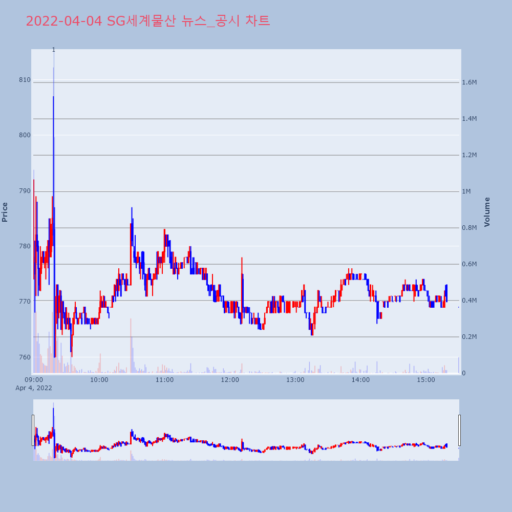 | 1 | [특징주] SG세계물산, 인수위 서울 '자연녹지지역'에 아파트 분양 허용 기[파이낸셜뉴스] 대통령직인수위원회가 서울 도심 내 주택 | 파이낸셜 | SG세계물산 | 2022-04-04 09:18:30 |