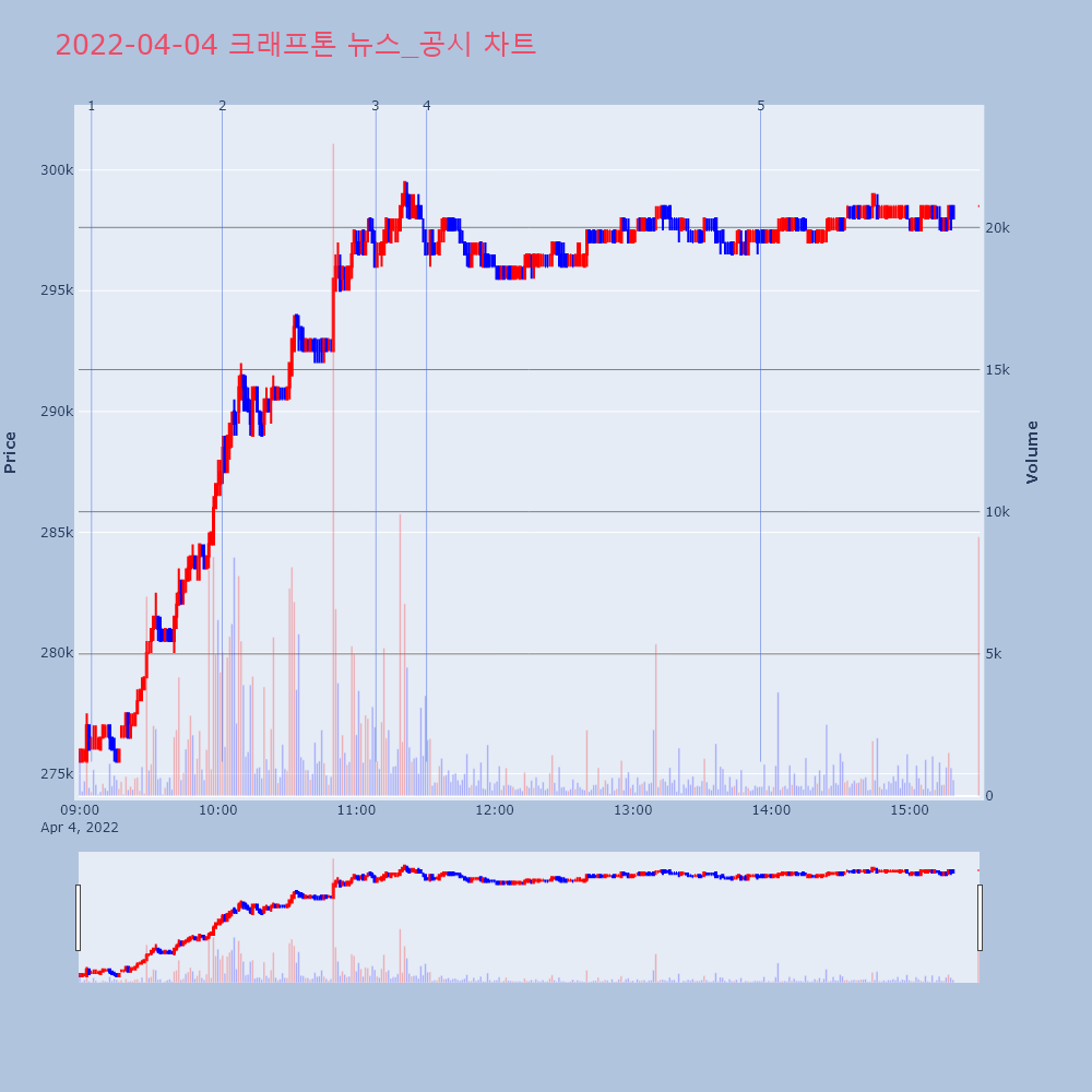 | 4 | [장중수급포착] 크래프톤, 외국인 99,211주 대량 순매수... 주가 +6.83% [서울=뉴스핌] 로보뉴스 = 04일 11시 30분 현재 | 뉴스핌 | 크래프톤 | 2022-04-04 11:30:27 |