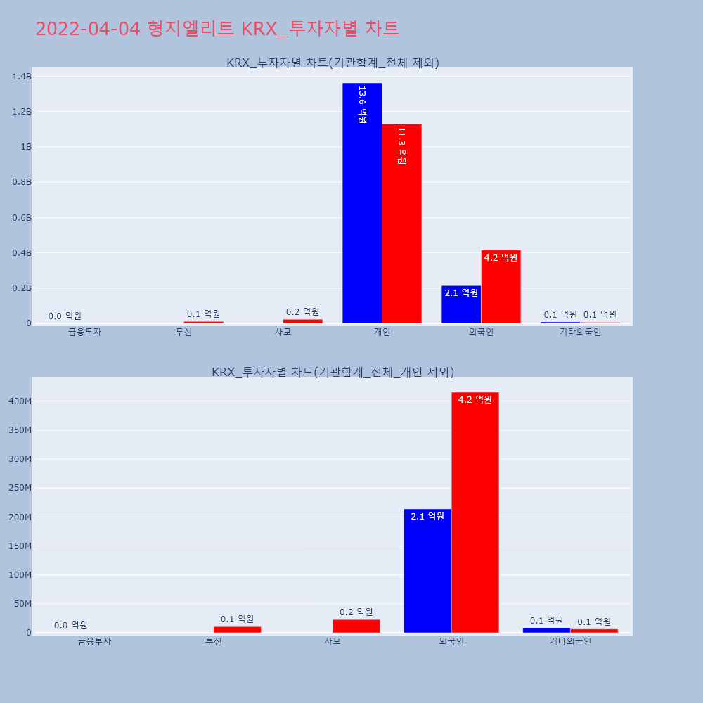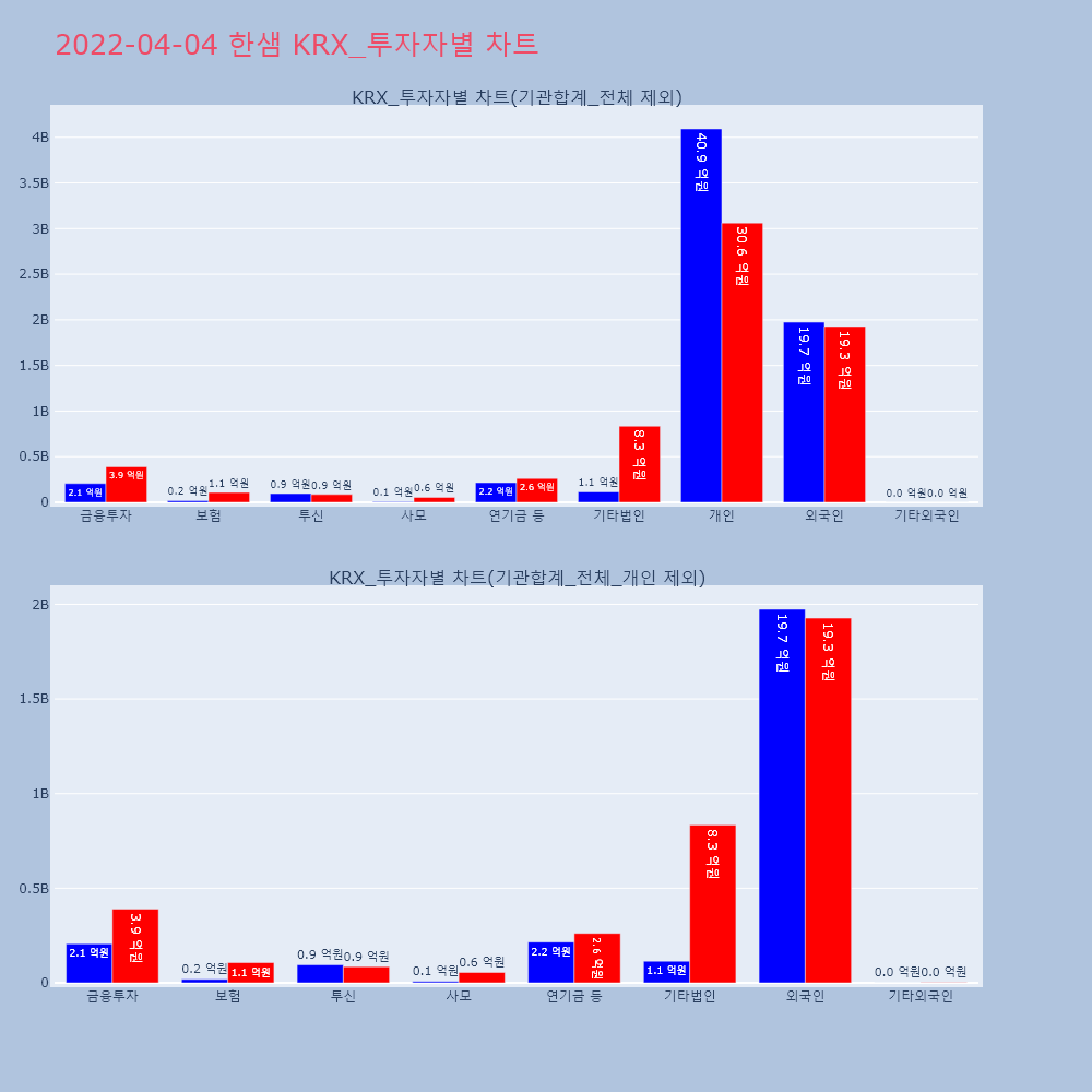 | 개인 | 169,492 | 90,809 | -78,683 | 26,847,646,500 | 14,354,323,000 | -12,493,323,500 |