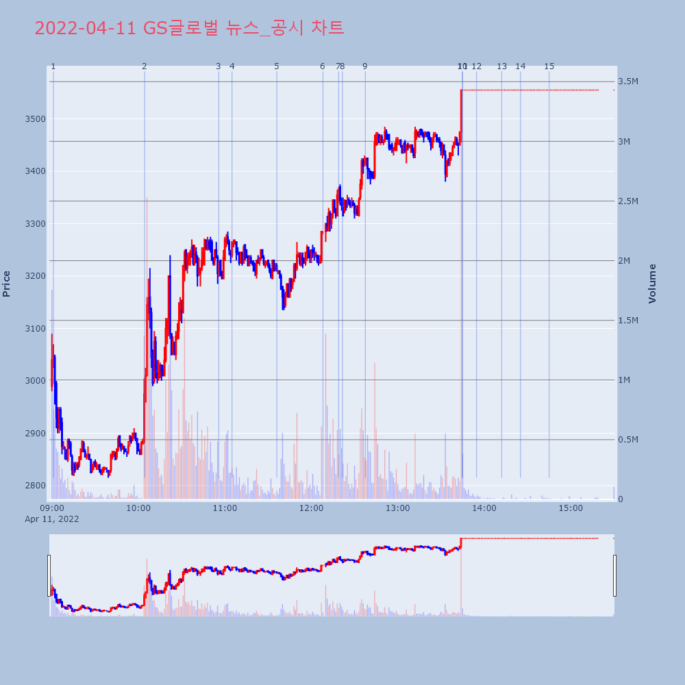 | 15 | 4월 11일 오후장 급등주 PICK5 - GS글로벌, 케이피에프, 남해화학... 최적의 매매타이밍을 실시간으로 전송하여 투자자들에게 도 | 파이낸셜 | GS글로벌 | 2022-04-11 14:45:05 |