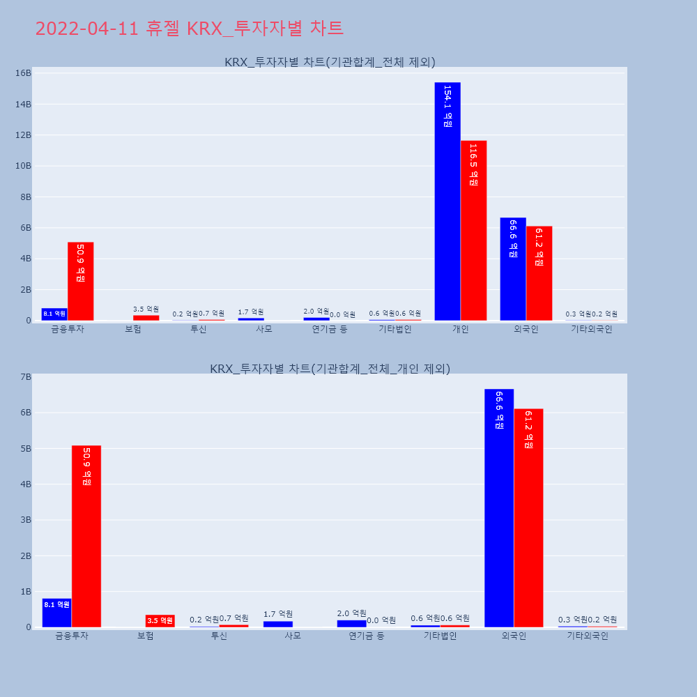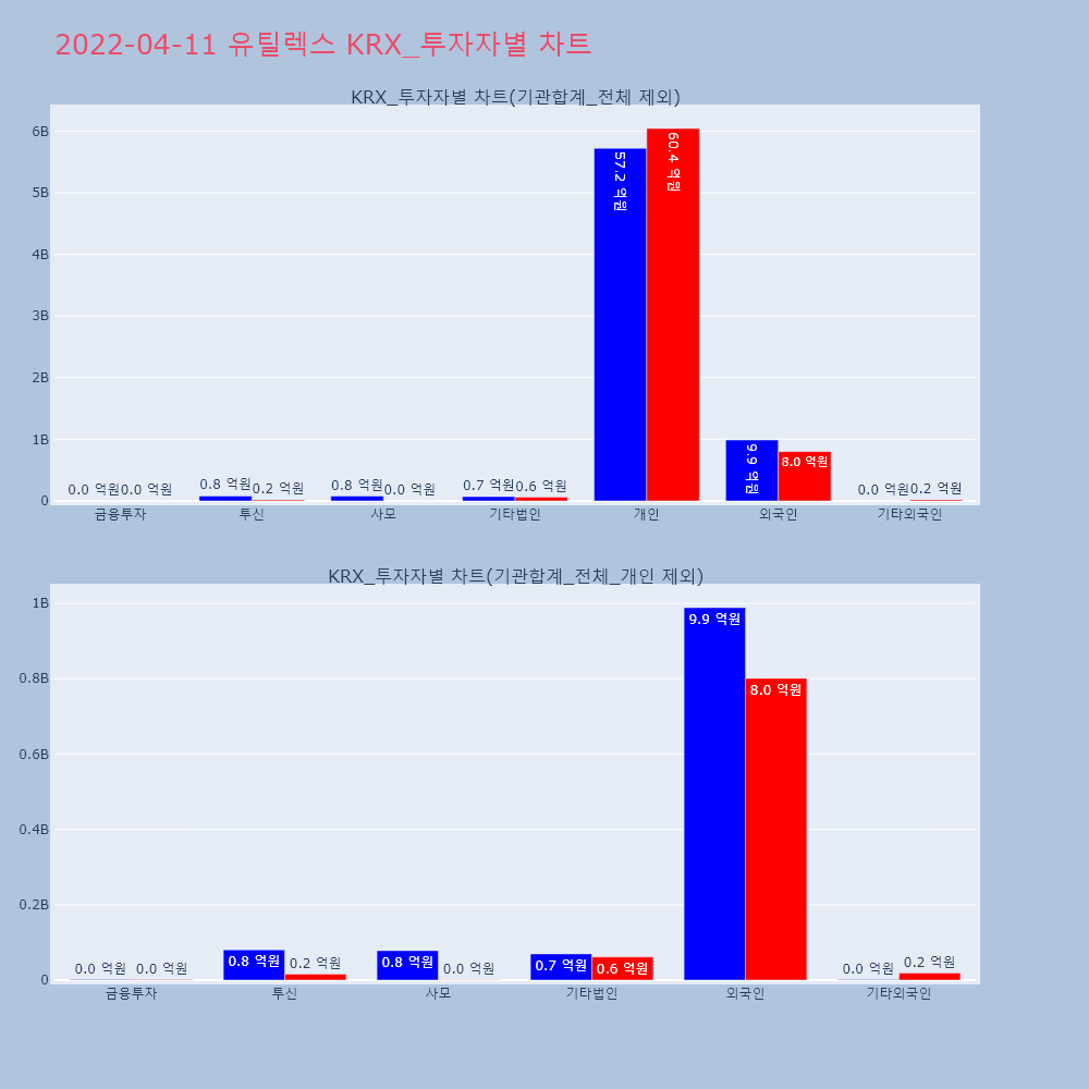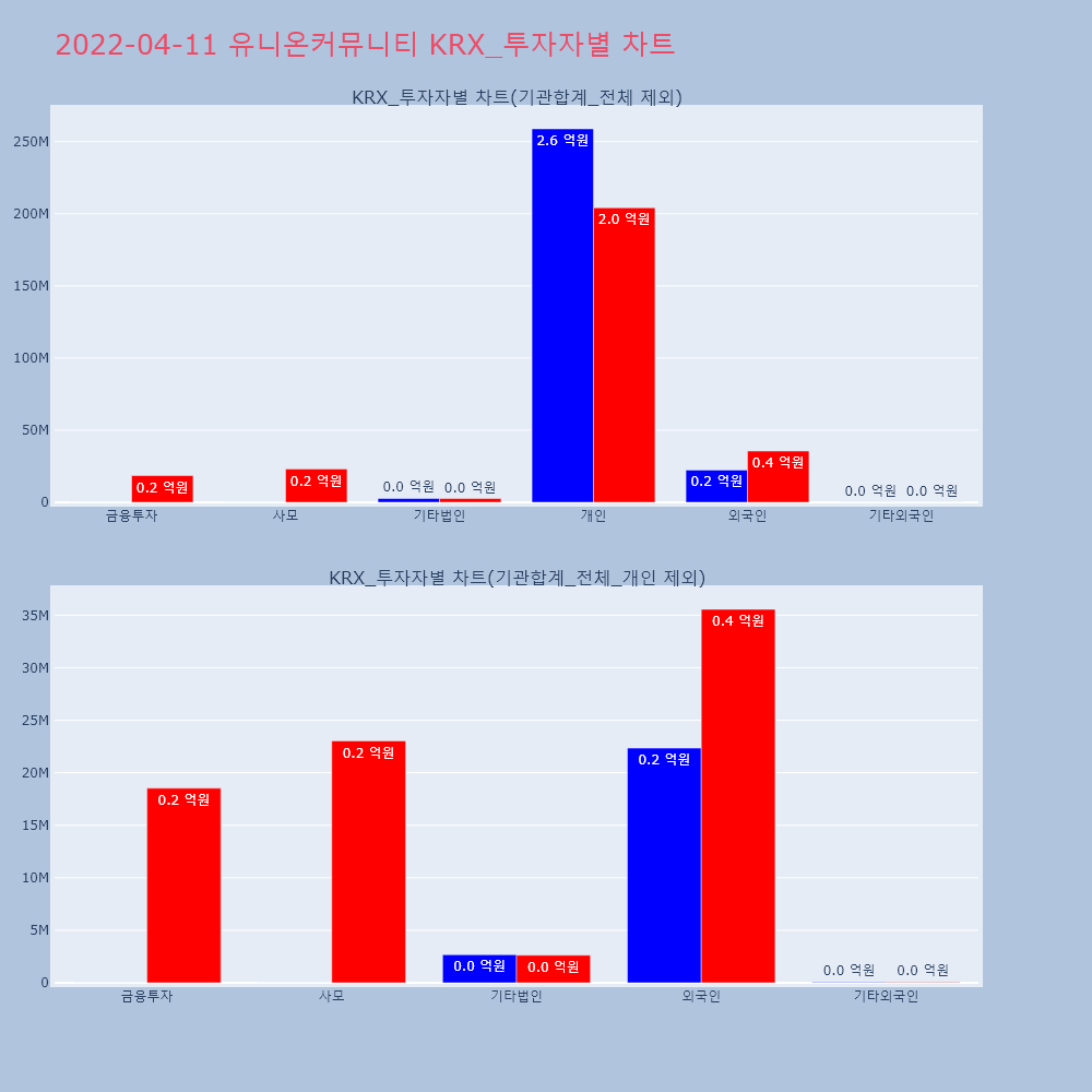| 투자기관 | 거래량_매도 | 거래량_매수 | 거래량_순매수 | 거래대금_매도 | 거래대금_매수 | 거래대금_순매수 |