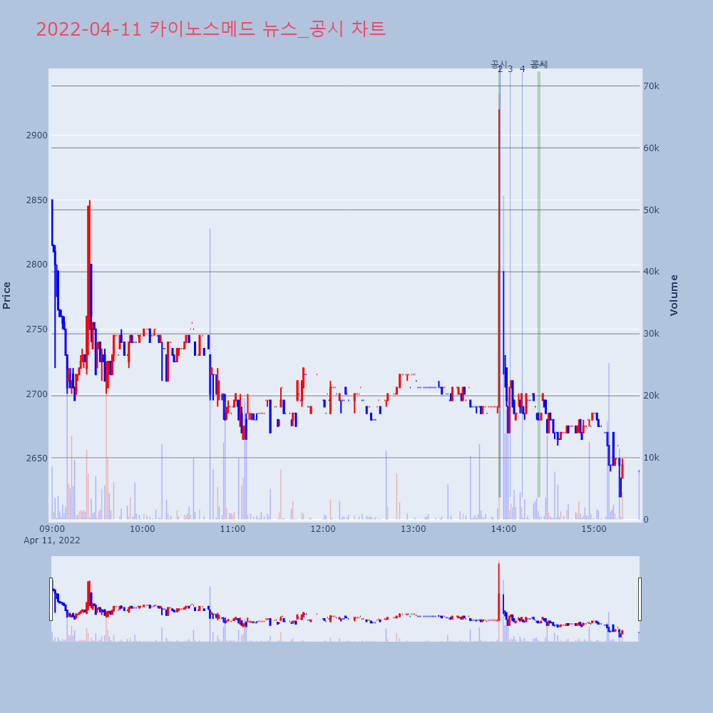 | 2 | 카이노스메드, +1.07% VI 발동카이노스메드(284620)가 VI가 발동했다. 전일 대 | 조선경제 | 카이노스메드 | 2022-04-11 13:57:44 |
