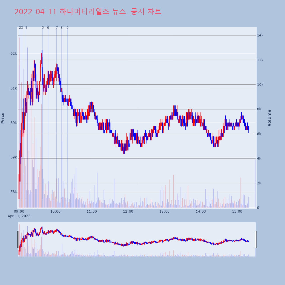 | 2 | 하나머티리얼즈, 아산 2공장 신설 발표 제목 : 하나머티리얼즈, 아산 2공장 신설 발표 (서울 | 인포스탁 | 하나머티리얼즈 | 2022-04-11 09:01:30 |