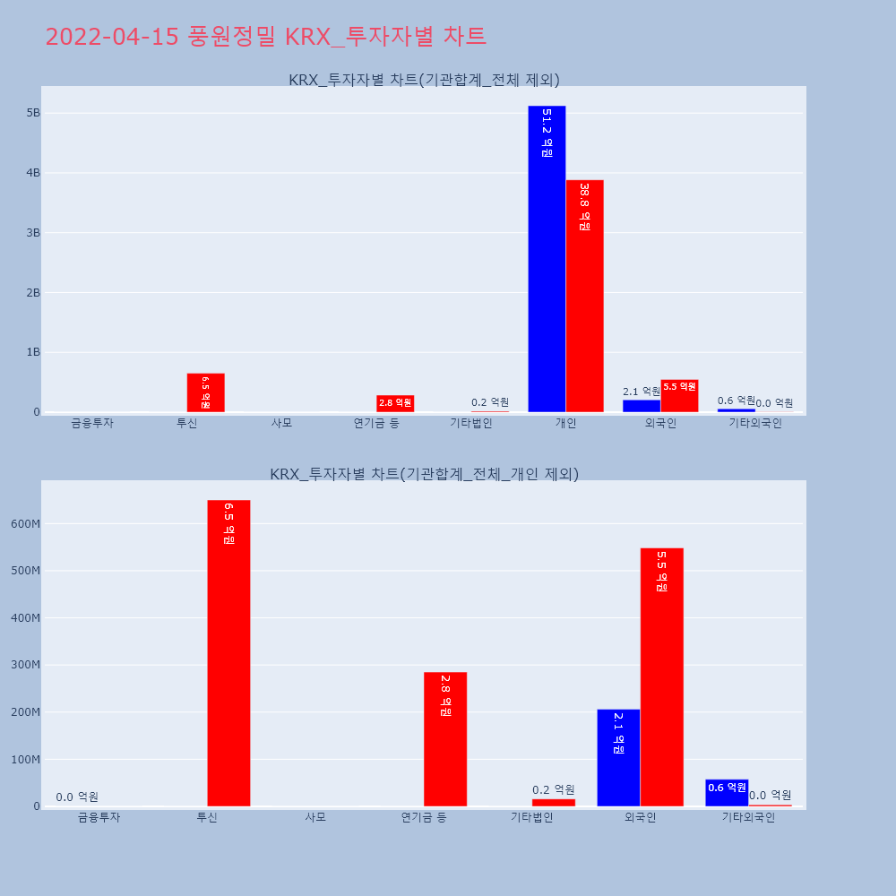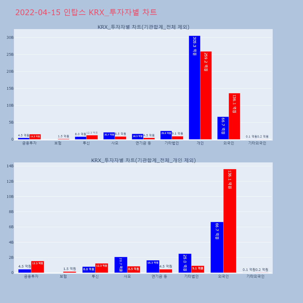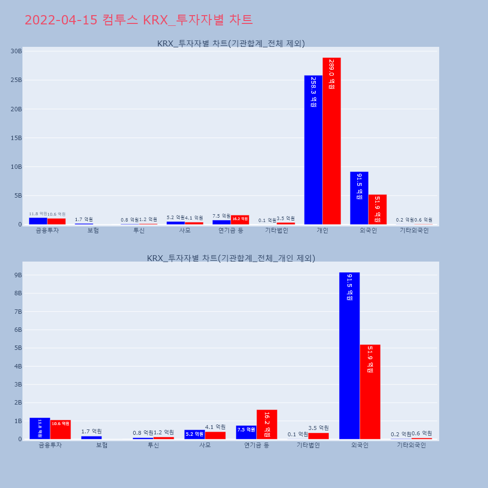 | 투자기관 | 거래량_매도 | 거래량_매수 | 거래량_순매수 | 거래대금_매도 | 거래대금_매수 | 거래대금_순매수 |