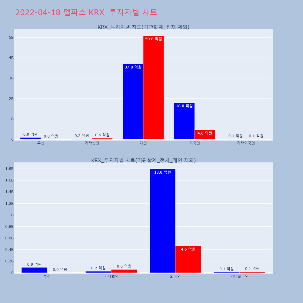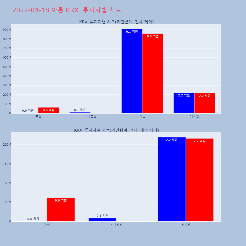 | 투자기관 | 거래량_매도 | 거래량_매수 | 거래량_순매수 | 거래대금_매도 | 거래대금_매수 | 거래대금_순매수 |