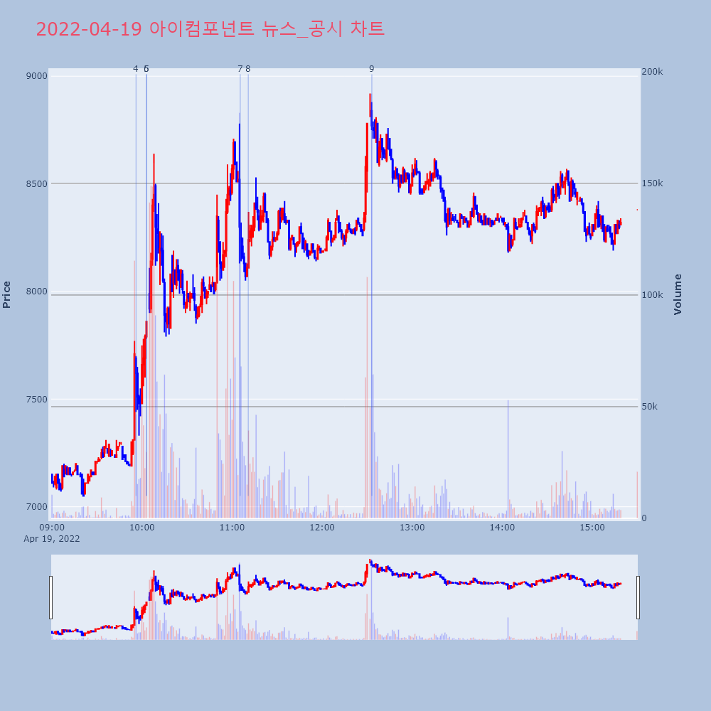 | 3 | 아이컴포넌트, +9.93% VI 발동아이컴포넌트(059100)가 VI가 발동했다. 전일 대 | 조선경제 | 아이컴포넌트 | 2022-04-18 14:24:28 |