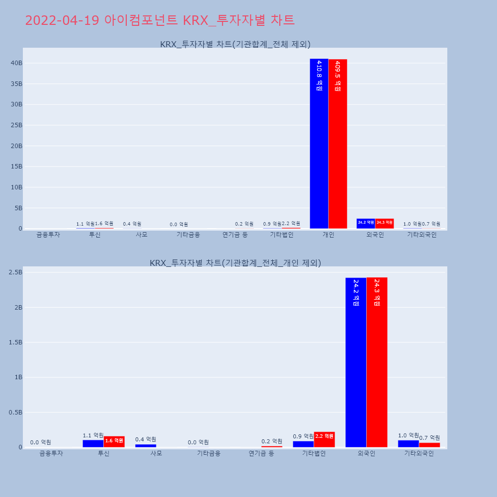 | 투자기관 | 거래량_매도 | 거래량_매수 | 거래량_순매수 | 거래대금_매도 | 거래대금_매수 | 거래대금_순매수 |
