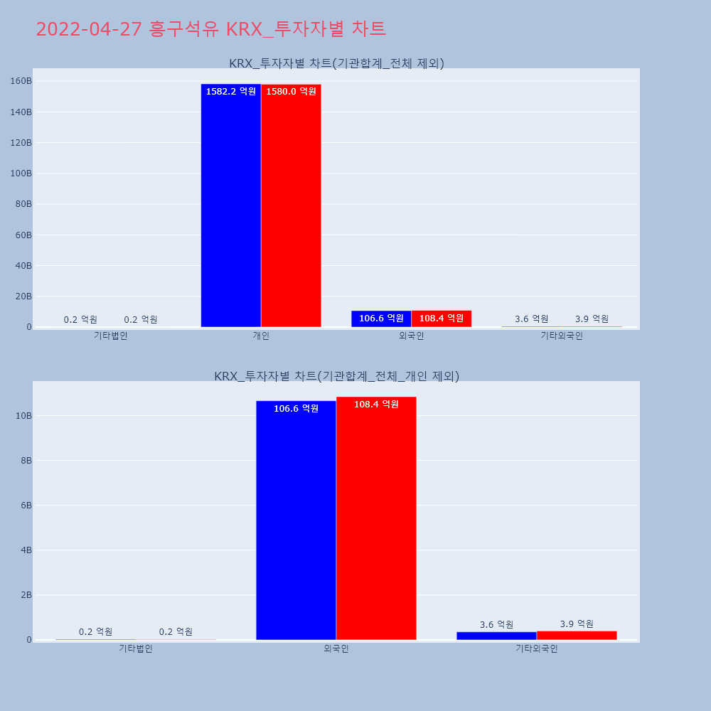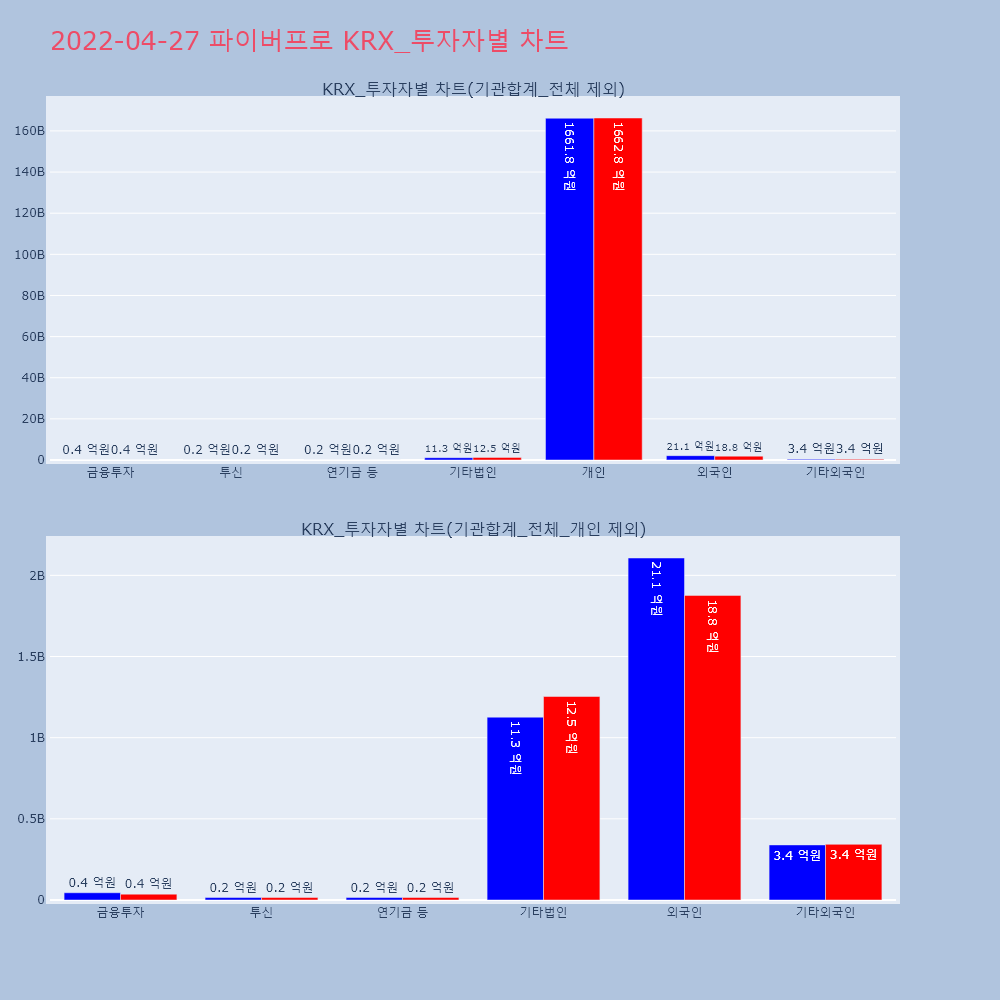 | 투자기관 | 거래량_매도 | 거래량_매수 | 거래량_순매수 | 거래대금_매도 | 거래대금_매수 | 거래대금_순매수 |