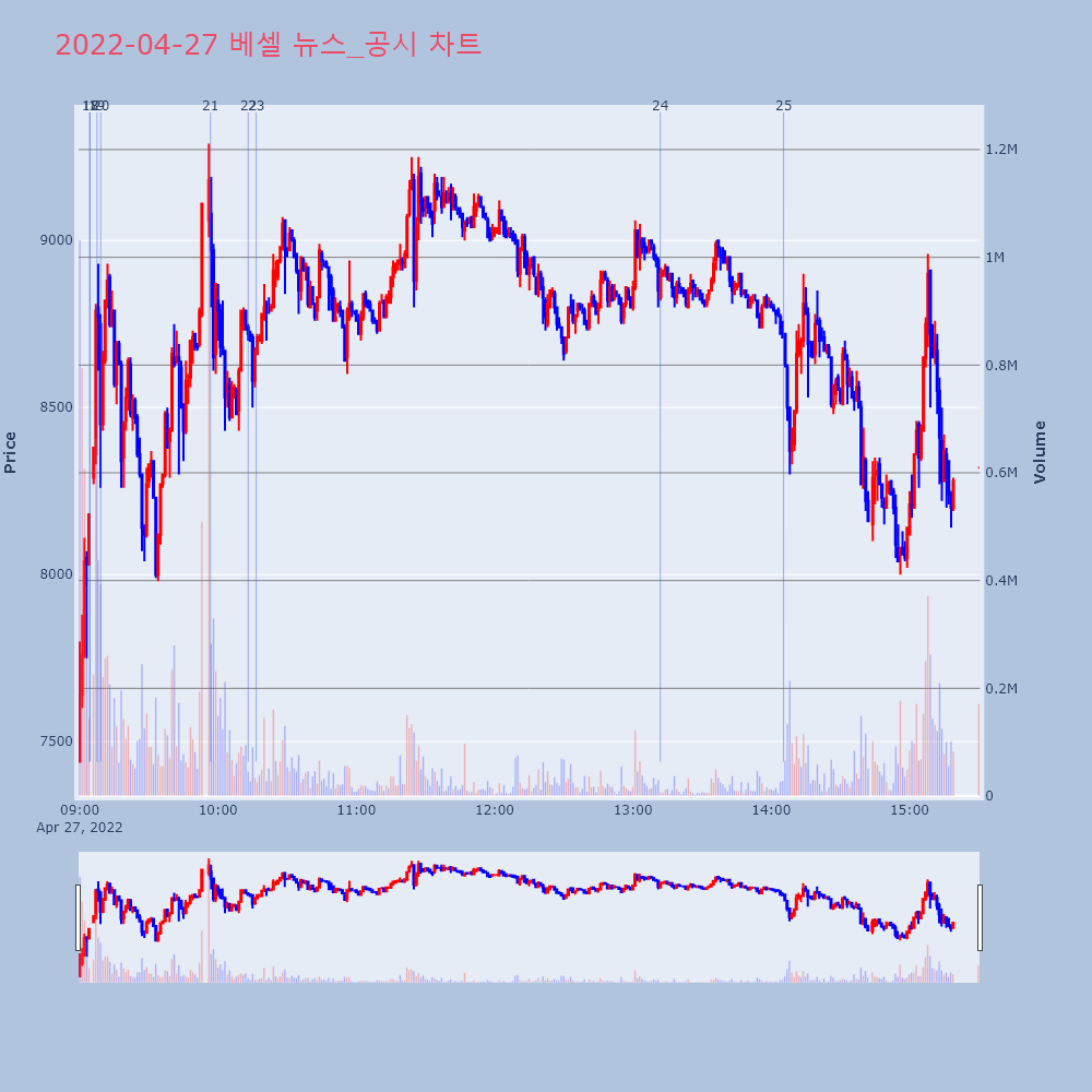 | 14 | [특징주] 베셀, 항공사업 UAM 관련주 부각에 '상한가' 제목 : [특징주] 베셀, 항공사업 UAM 관련주 부각 | 인포스탁 | 베셀 | 2022-04-26 13:31:40 |