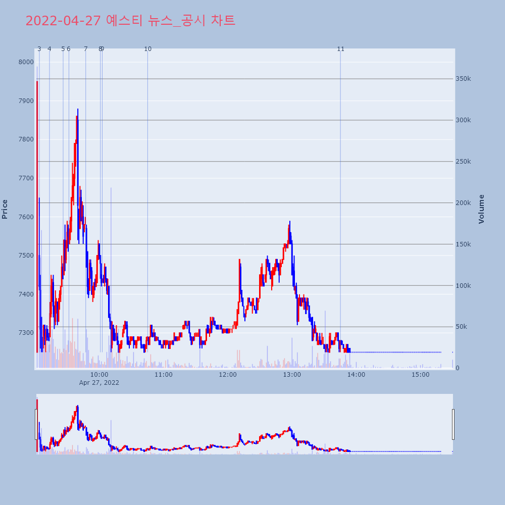| 2022-04-27 11:09:00 | 20220427900148 | 주권매매거래정지 (무상증자) |