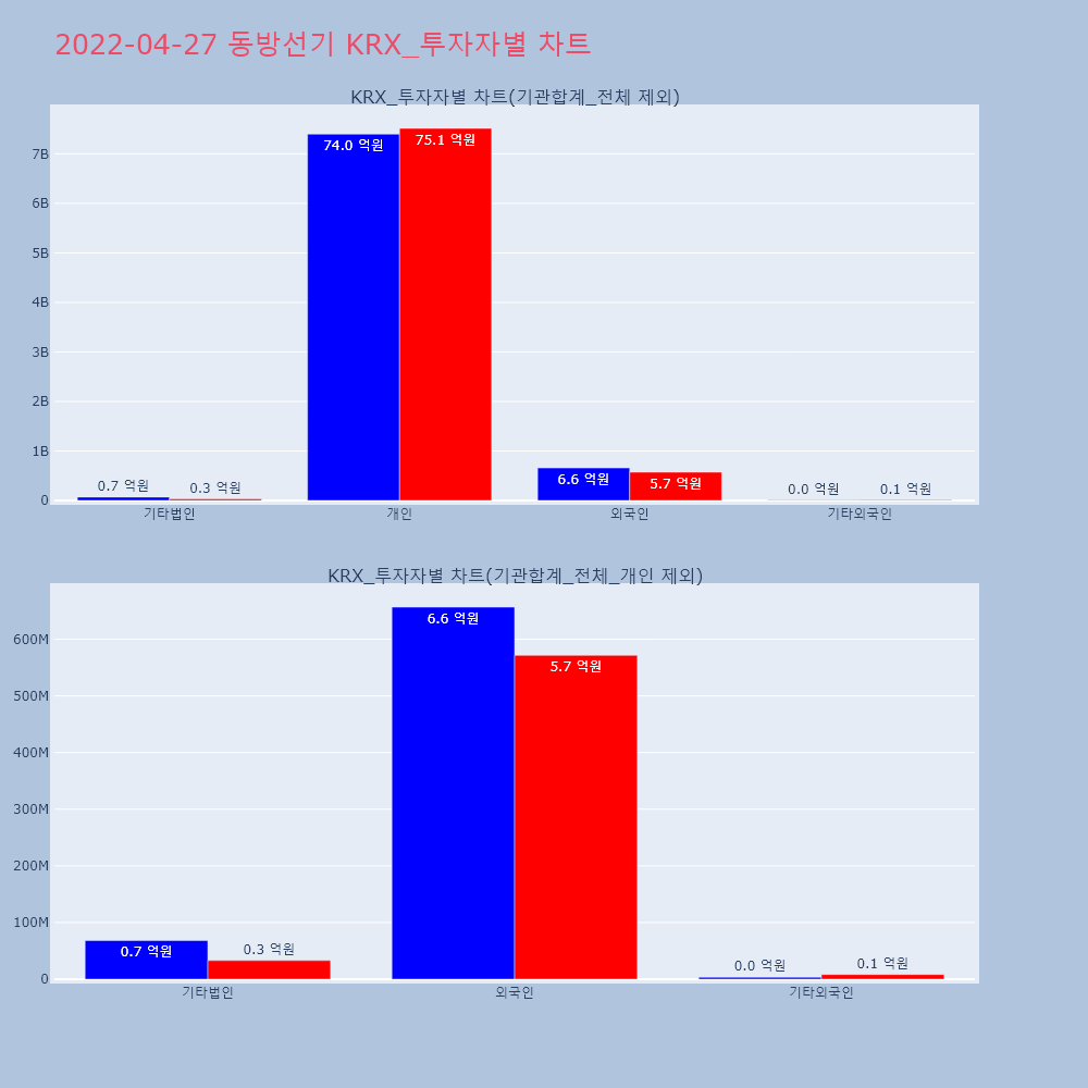 | 투자기관 | 거래량_매도 | 거래량_매수 | 거래량_순매수 | 거래대금_매도 | 거래대금_매수 | 거래대금_순매수 |