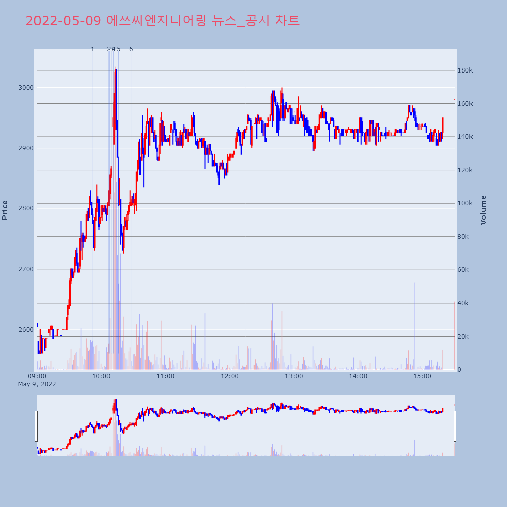 | 3 | 에쓰씨엔지니어링, +9.77% VI 발동에쓰씨엔지니어링(023960)이 VI가 발동했다. 전일 | 조선경제 | 에쓰씨엔지니어링 | 2022-05-09 10:09:02 |